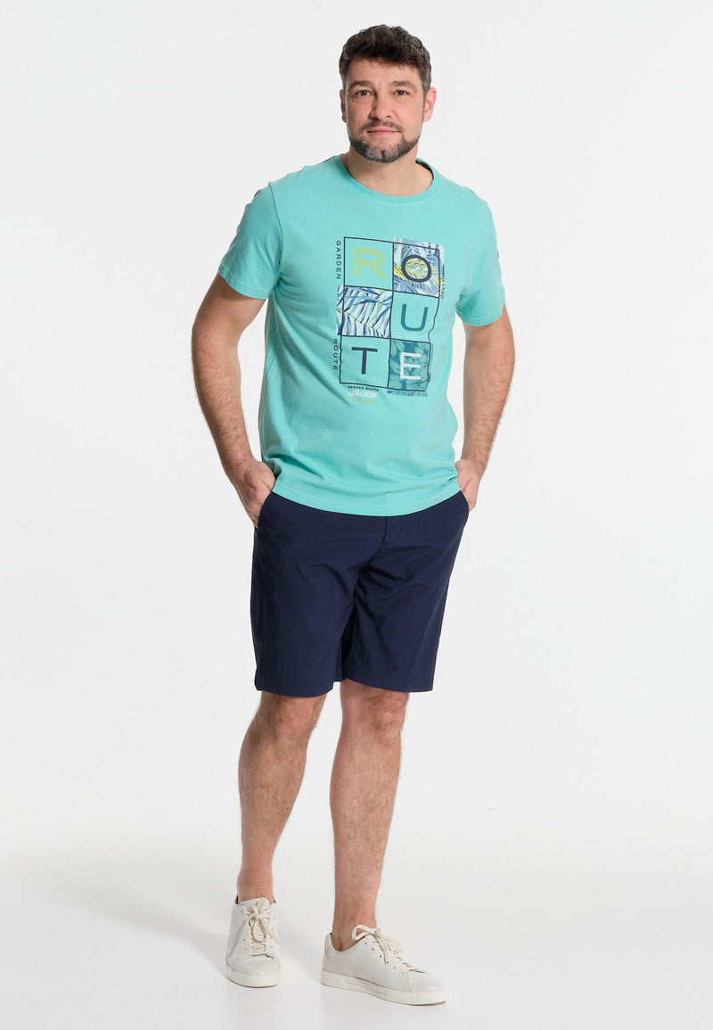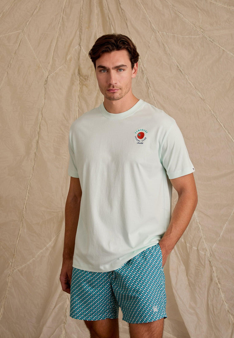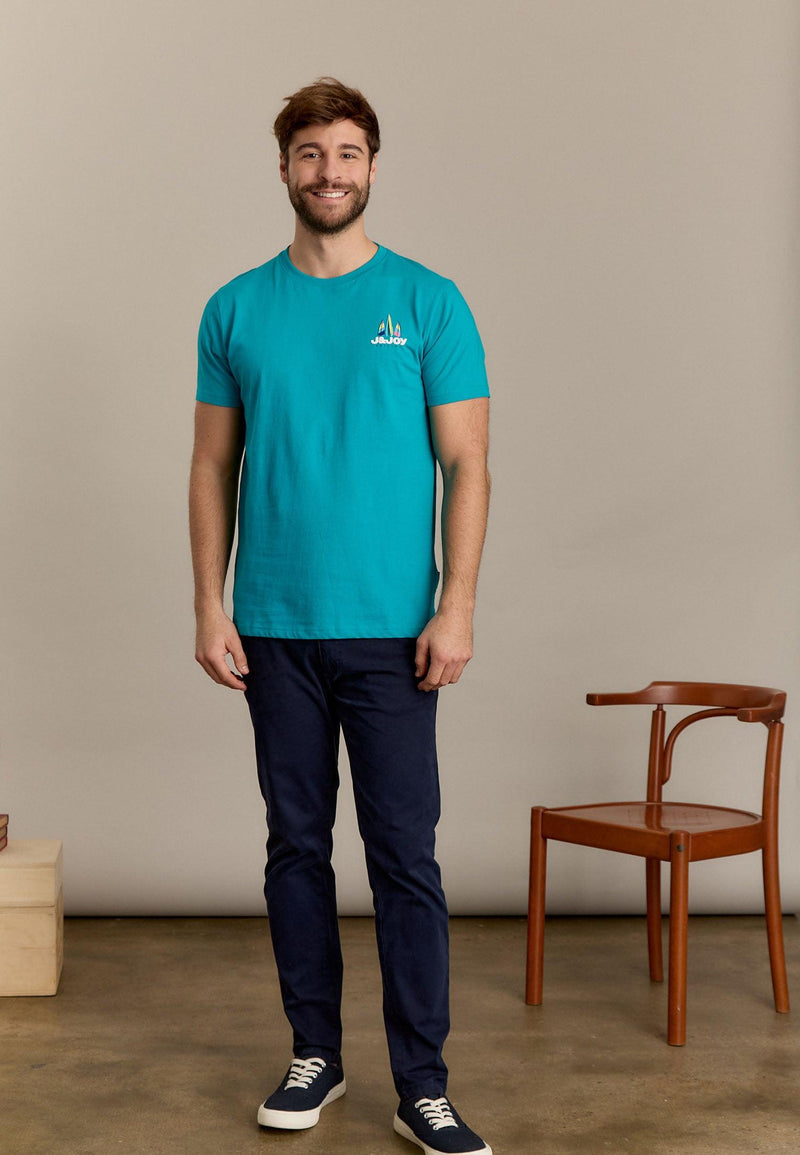 T-shirt turquoise avec logo palmier sur la poitrine et dans le dos