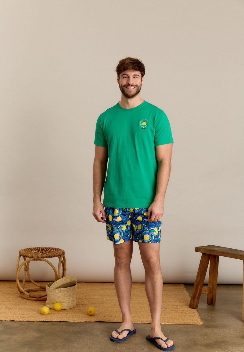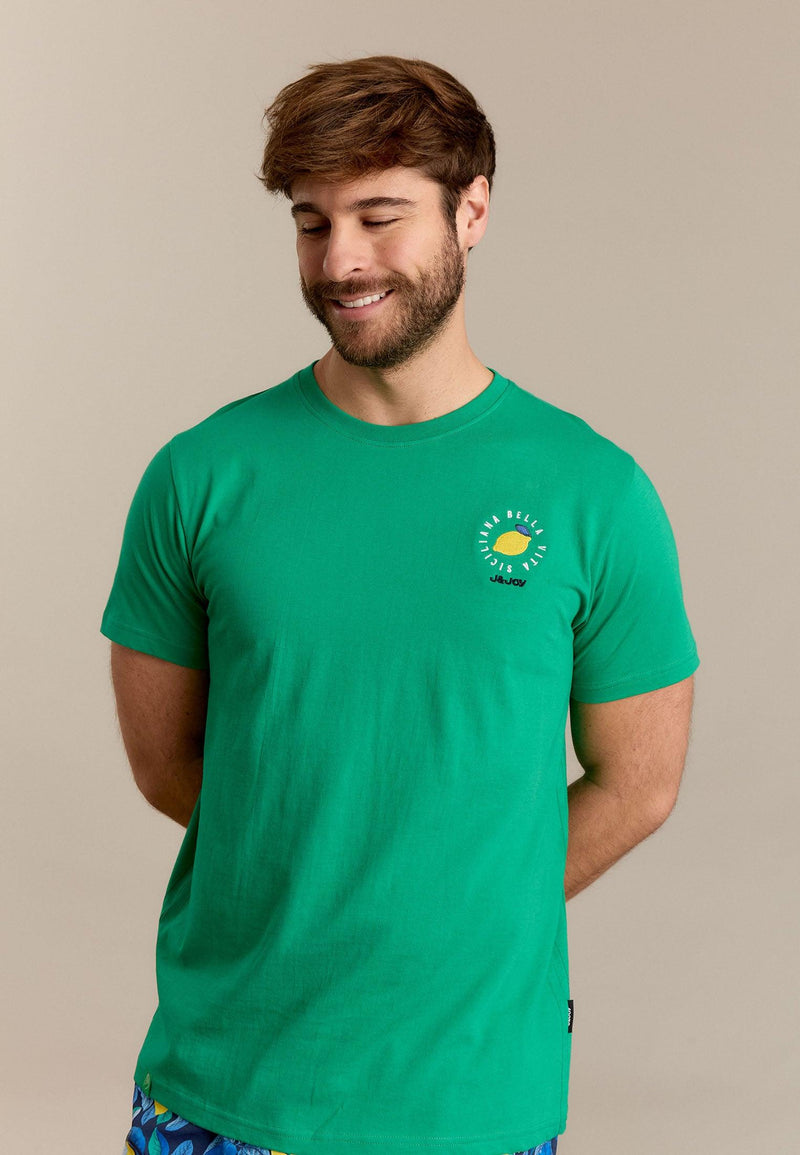 T-shirt homme vert logo citron sur la poitrine et dans le dos