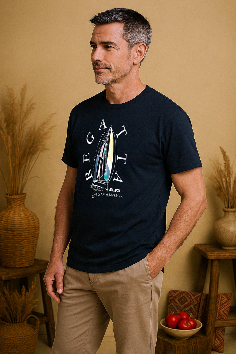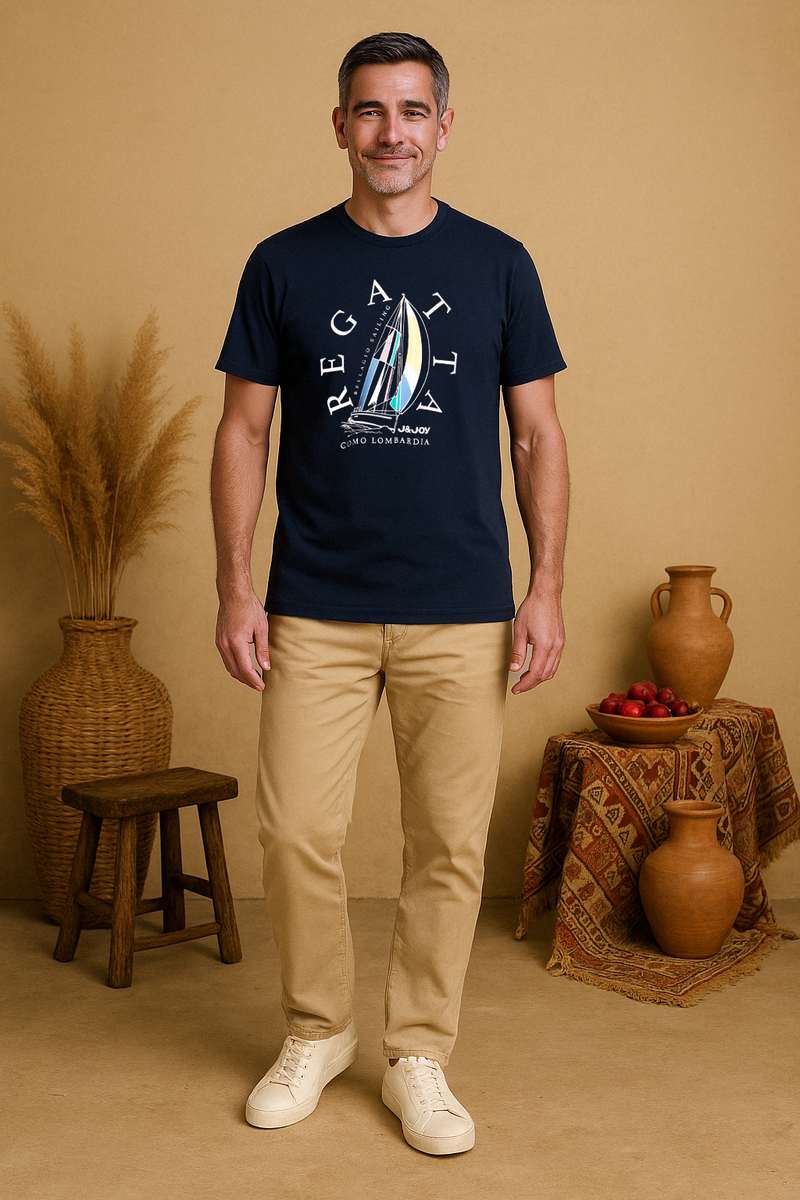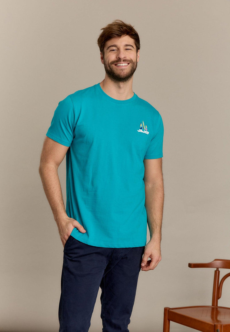 T-shirt homme vert logo bateau sur la poitrine et dans le dos