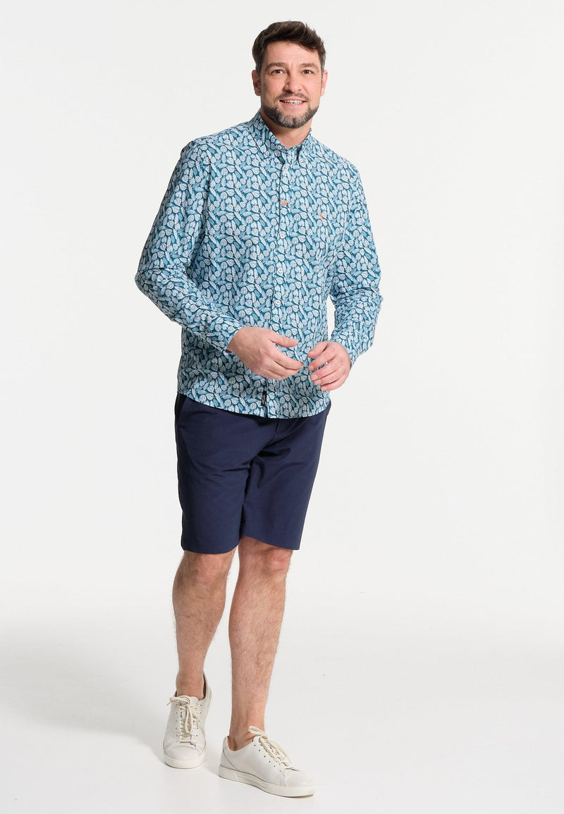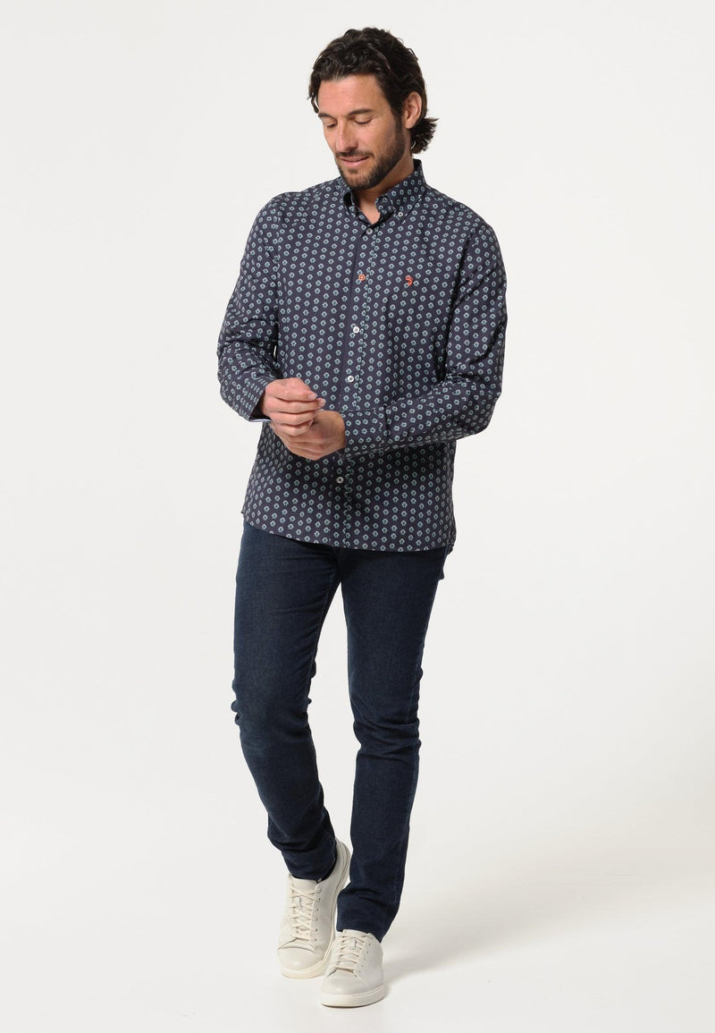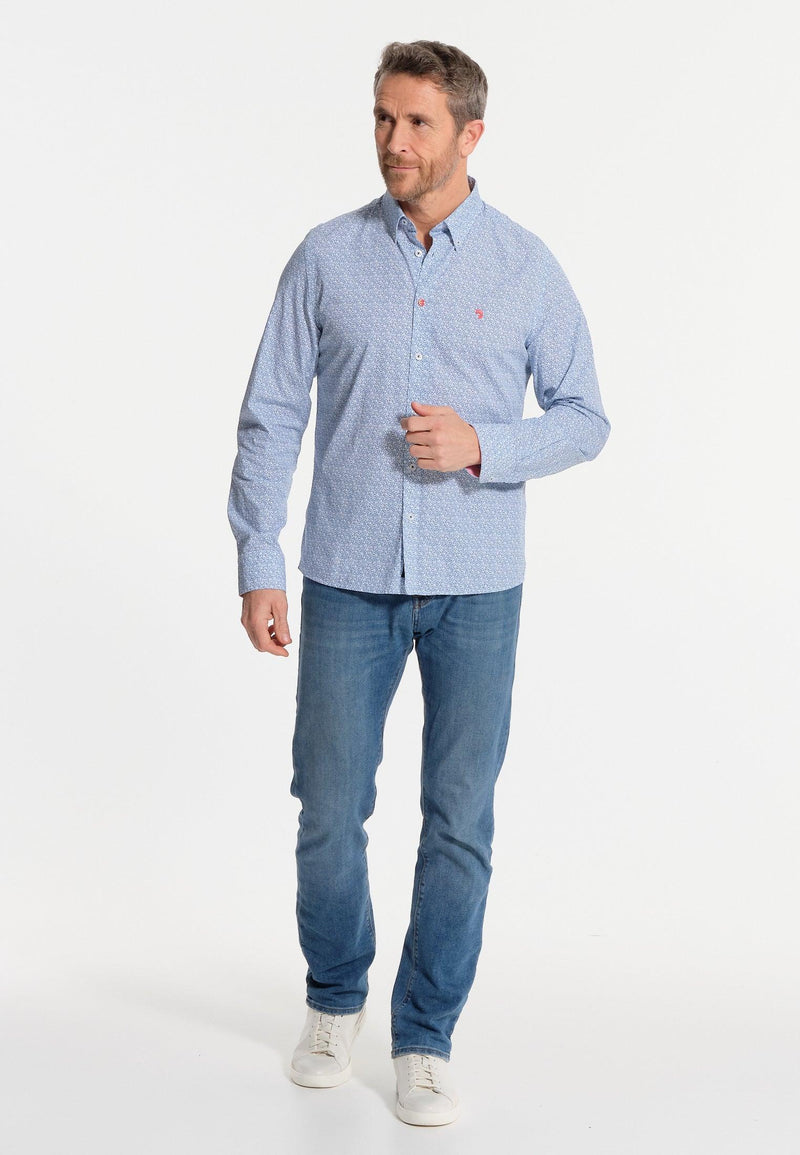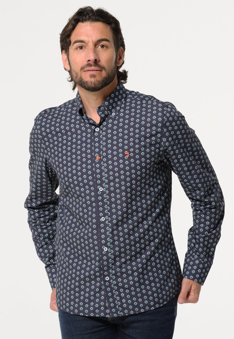 Chemise homme bleue longues manches motif imprimé