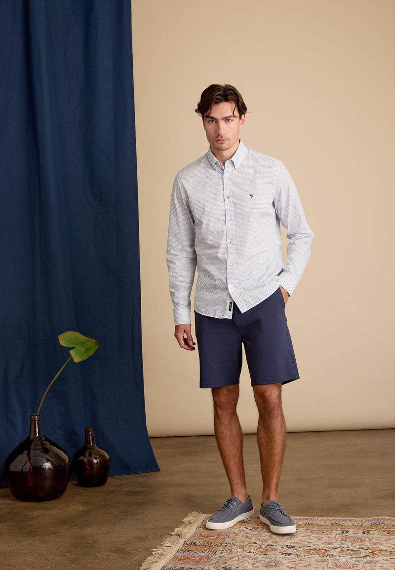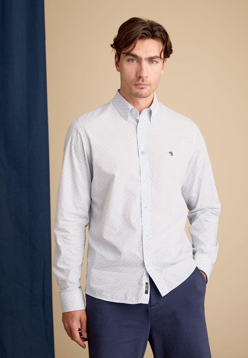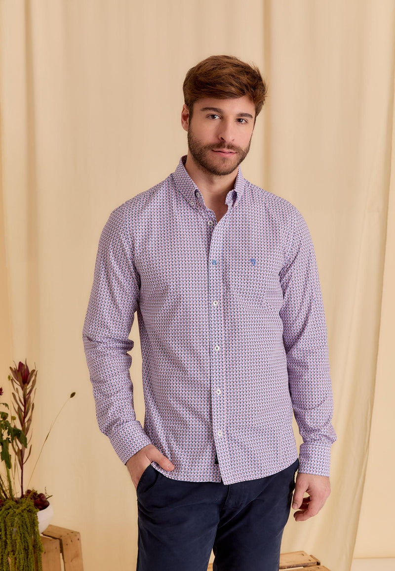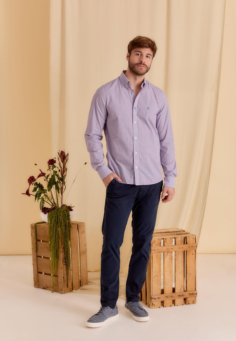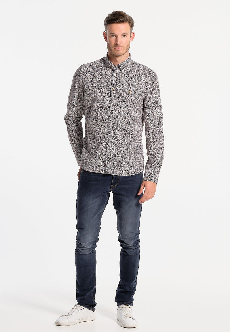 Chemise homme bleue longues manches motif imprimé