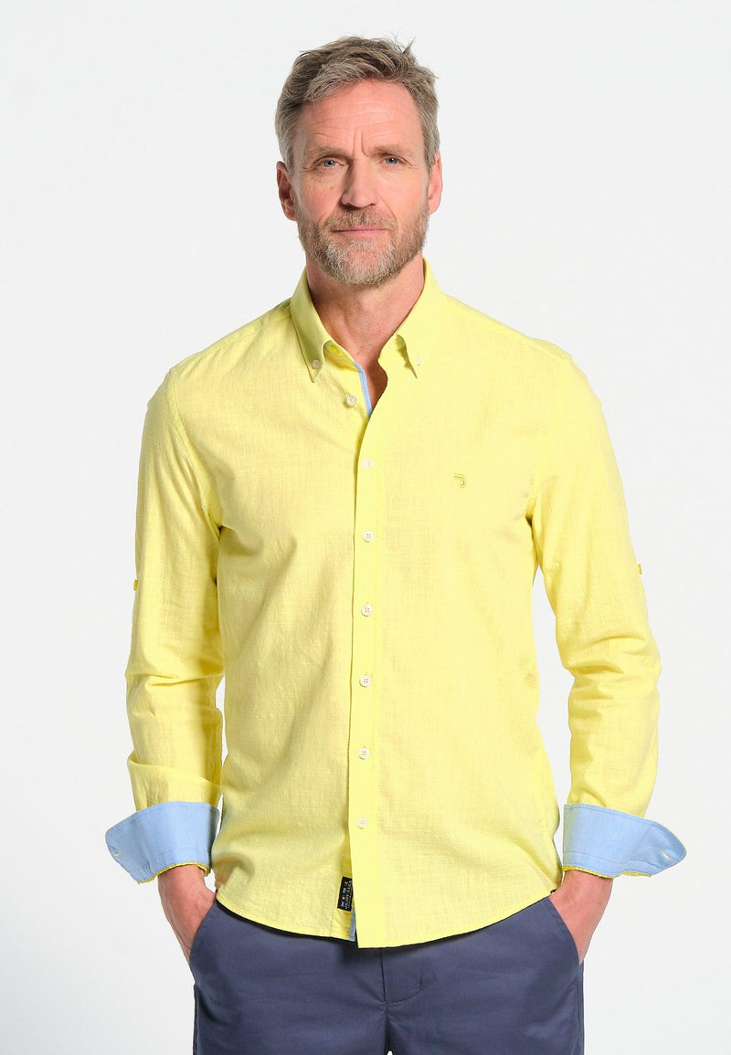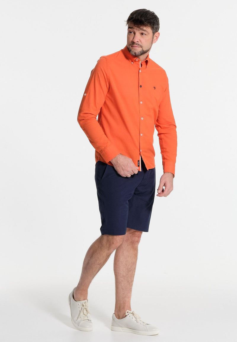 Chemise homme longues manches blanche et orange à motifs géométriques