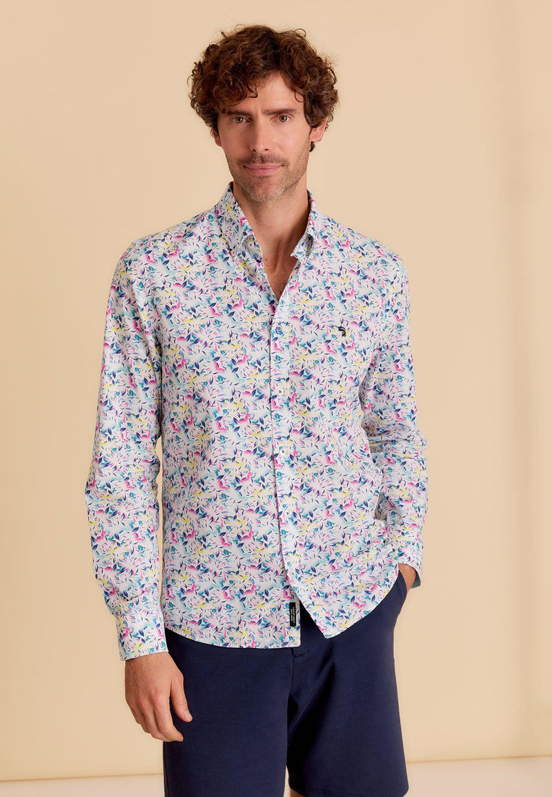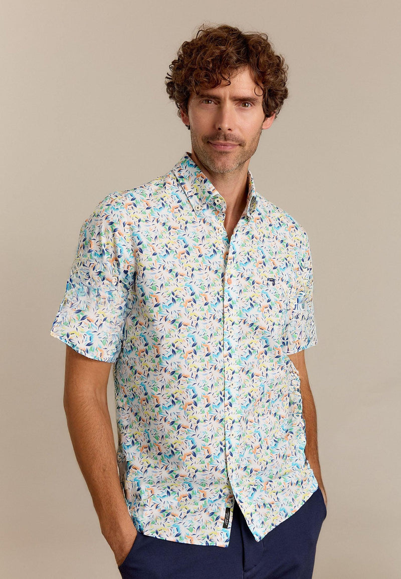 Chemise homme multicolore courtes manches avec motifs fleuris