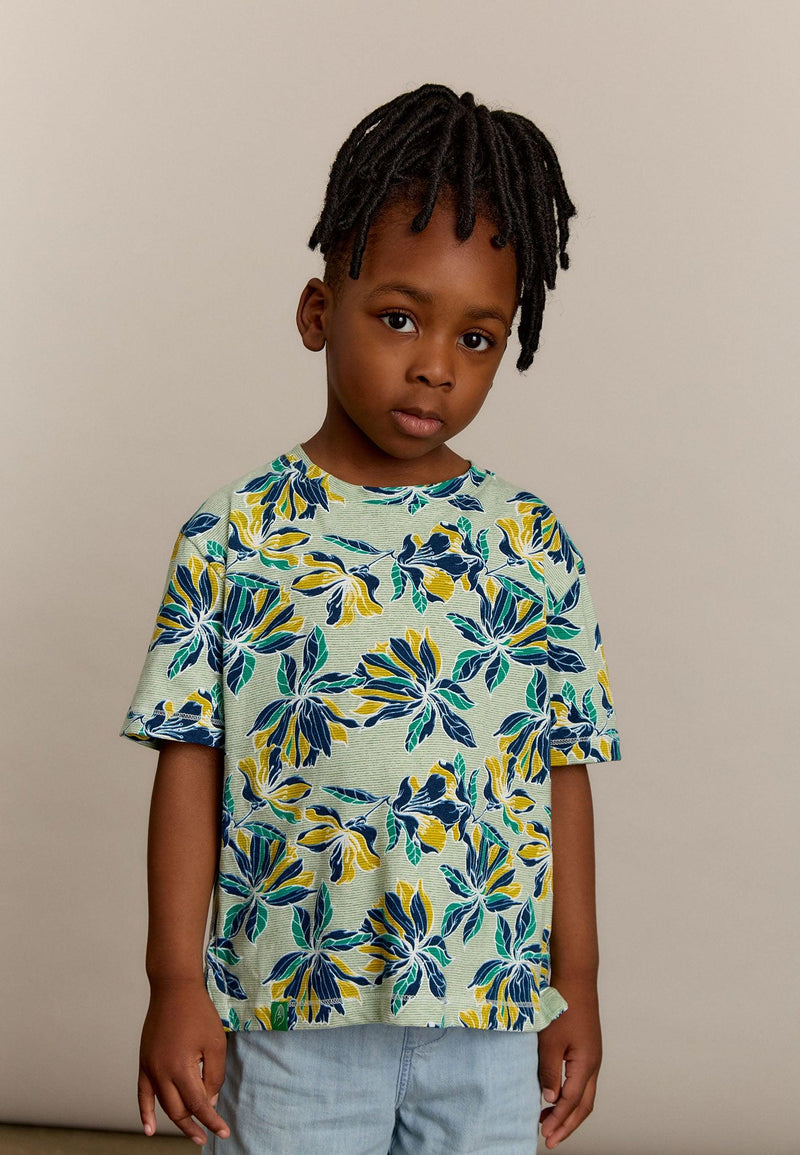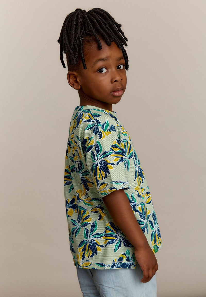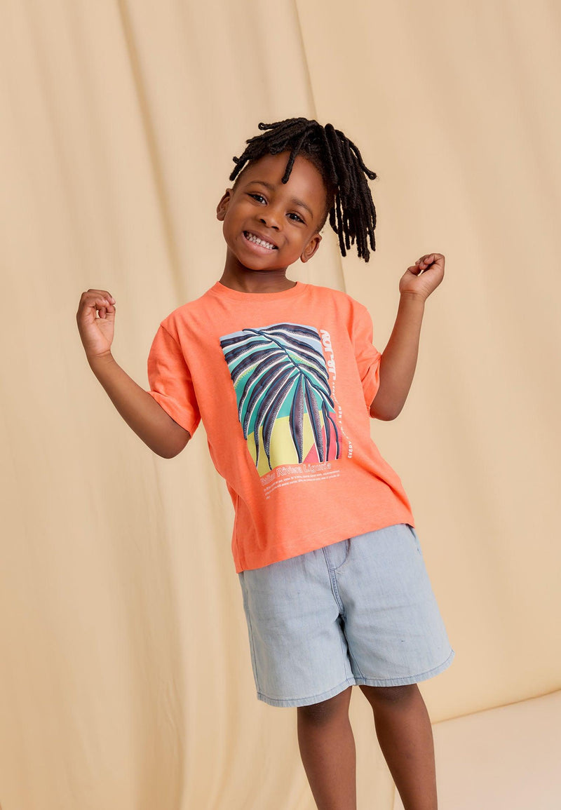 T-shirt garçon gris palmier sur la poitrine et dans le dos