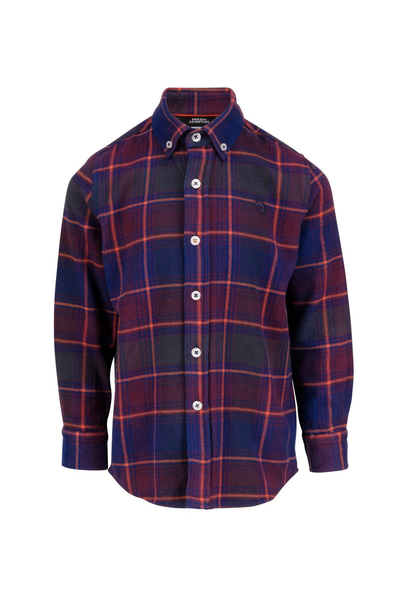Chemise garçon en flanelle à carreaux bleu et bordeaux