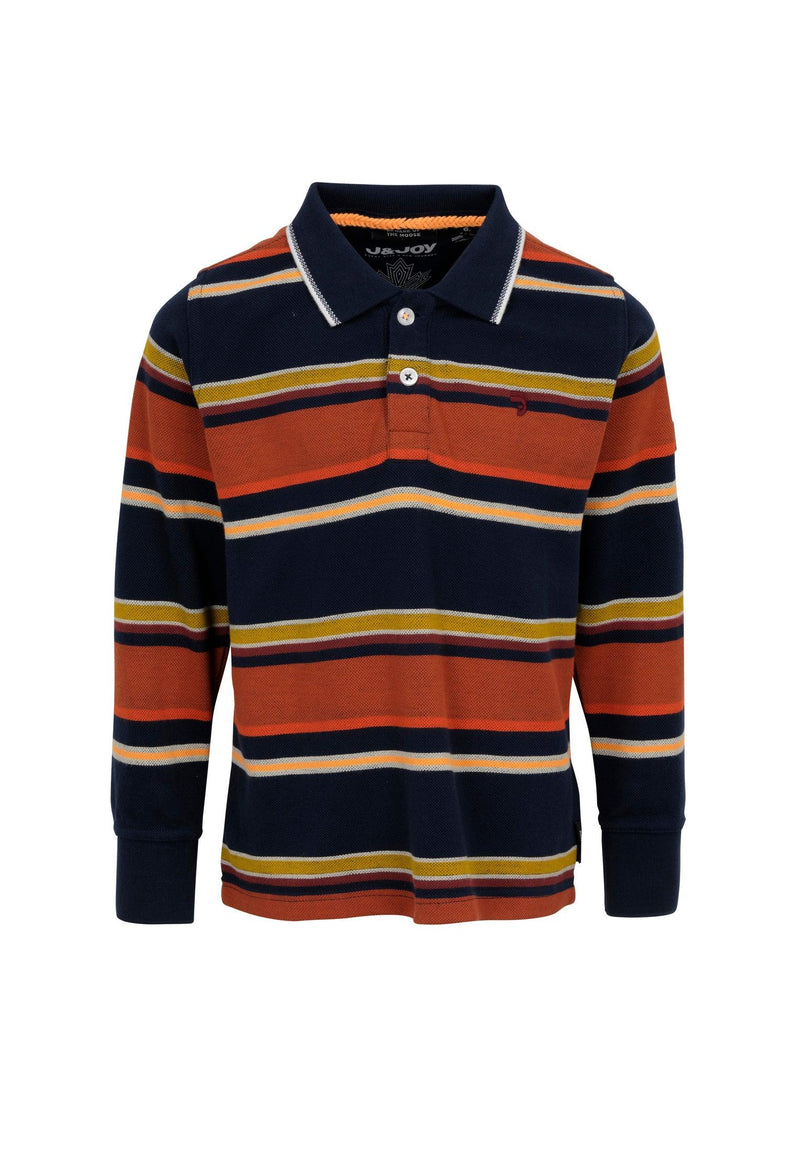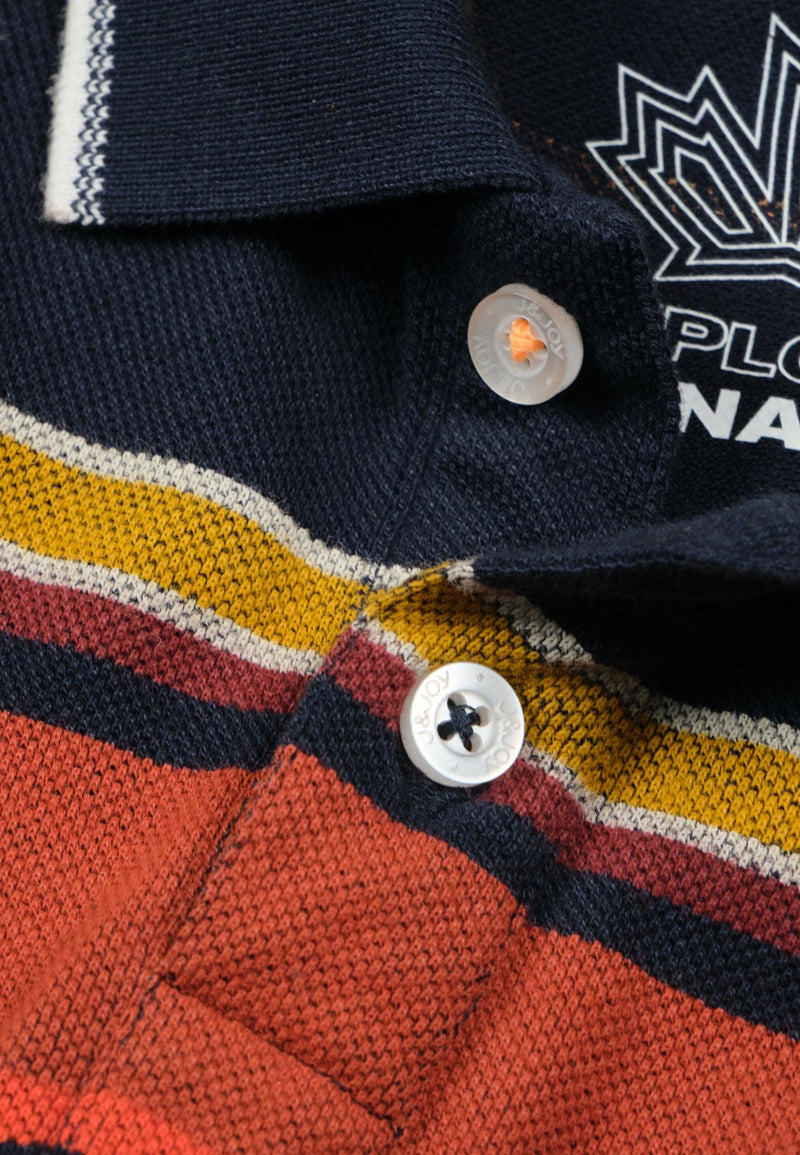 Polo garçon bleu avec lignes multicolores