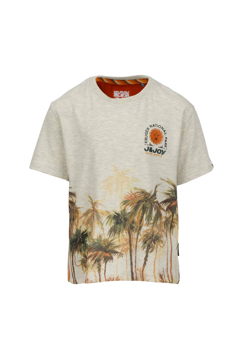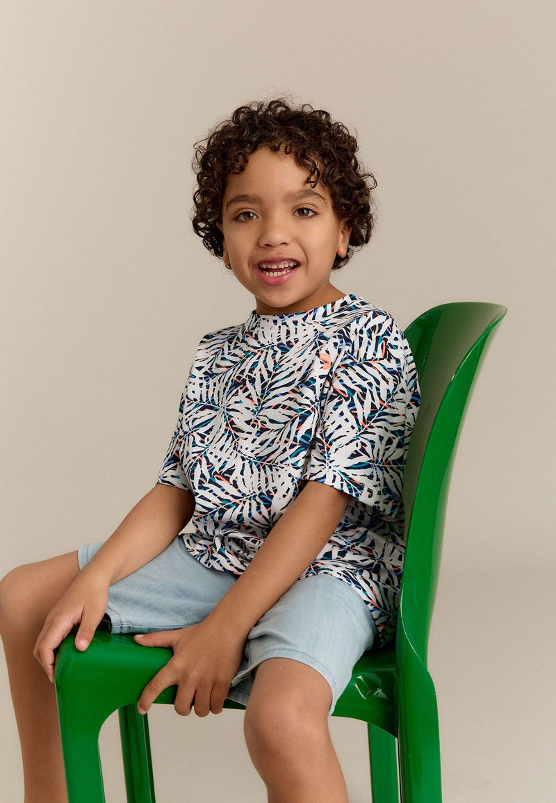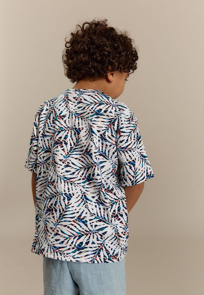 T-shirt garçon blanc cassé avec imprimés palmiers