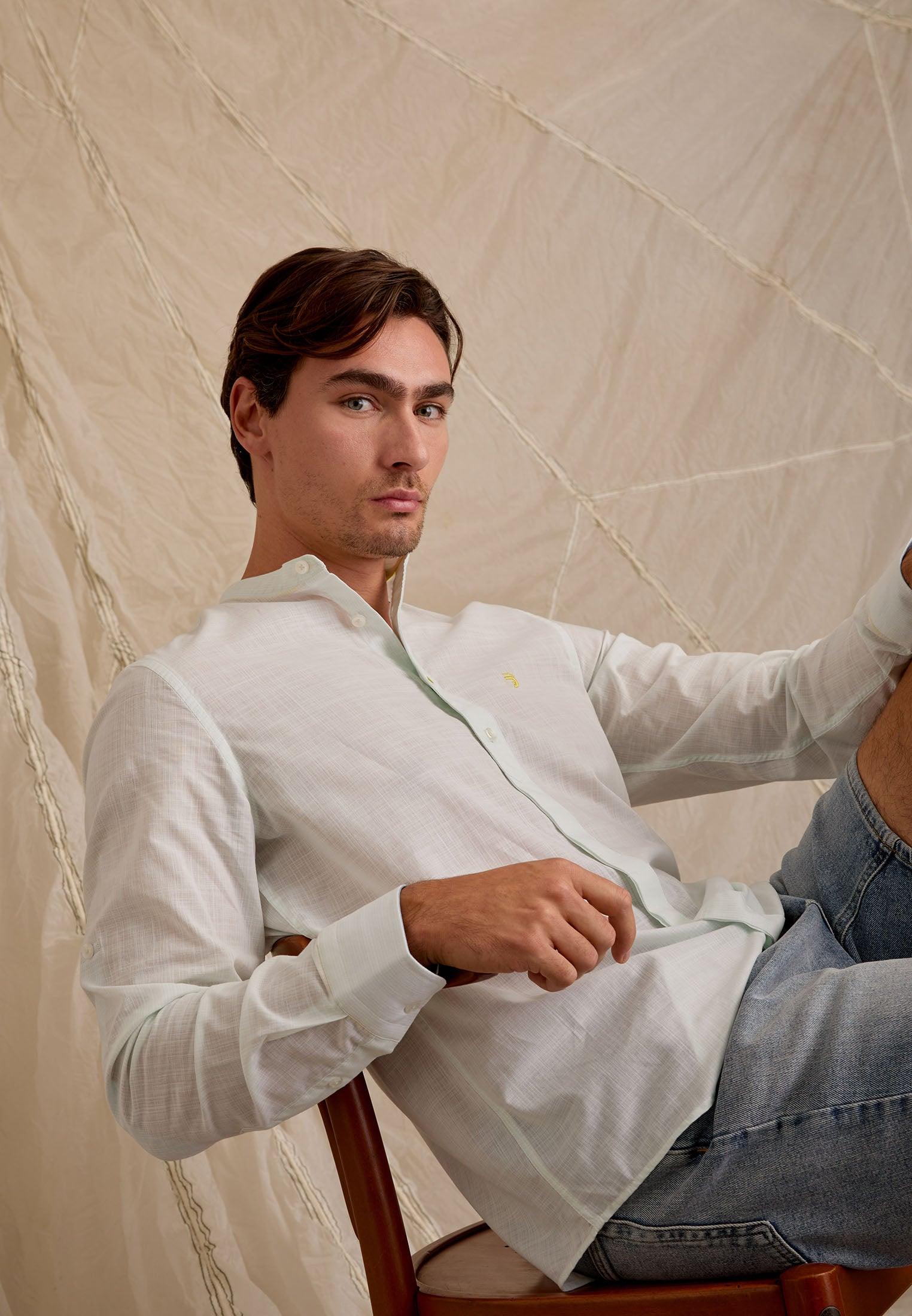 Optez pour un look raffiné et élégant avec cette chemise homme à manches longues, inspirée par la passion pour la cuisine italienne. Confectionnée en 100% coton de haute qualité, cette chemise offre une coupe droite impeccable, mettant en valeur le motif imprimé ligné blanc et vert. Le col classique, les pointes boutonnées et la patte de boutonnage classique ajoutent une touche de sophistication à cette pièce intemporelle. Les poignets à coins arrondis et le motif imprimé à l'intérieur du col et des poignets témoignent de l'attention portée aux détails. Le logo J&JOY brodé sur la poitrine et le cordonnet apportent une touche finale d'authenticité à cette chemise. Commandez dès maintenant et ajoutez une pièce essentielle à votre garde-robe pour une allure sobre et distinguée.