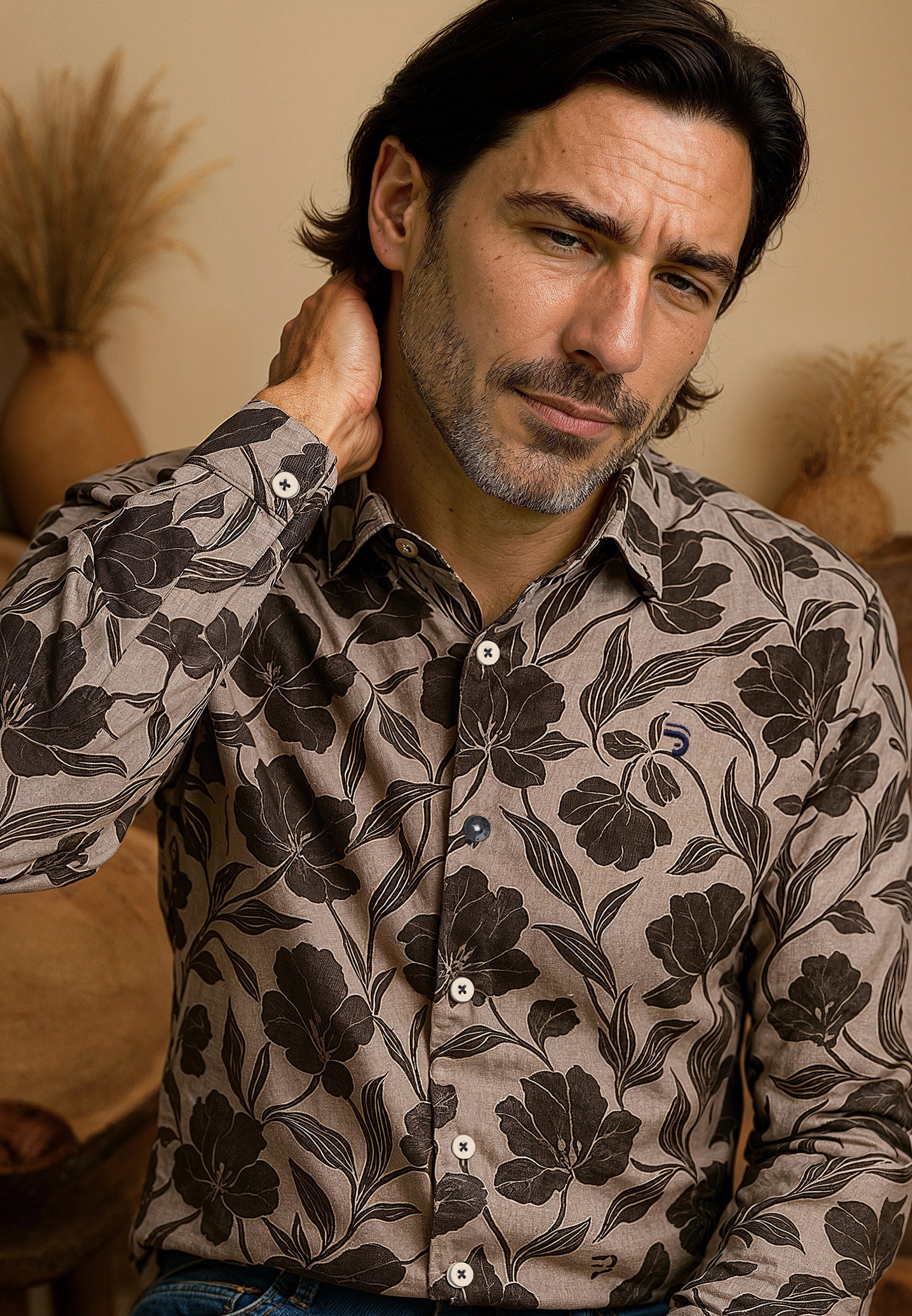 Obtenez un look élégant et tendance avec cette chemise homme grise à motif floral, inspirée par l'atmosphère animée de Santiago. Fabriquée en 100% coton, cette chemise offre un confort exceptionnel et une coupe droite flatteuse. Le motif floral imprimé apporte une touche de fraîcheur et de style, tandis que le col classique avec les pointes boutonnées et la patte de boutonnage classique ajoutent une touche classique et sophistiquée. Les manches longues et les poignets à coins arrondis offrent des détails soignés, et le logo J&JOY brodé sur la poitrine témoigne de l'authenticité de cette pièce. Avec son cordonnet subtil, cette chemise est un incontournable pour une garde-robe masculine tendance. Commandez dès maintenant pour ajouter une élégance décontractée à votre style quotidien.