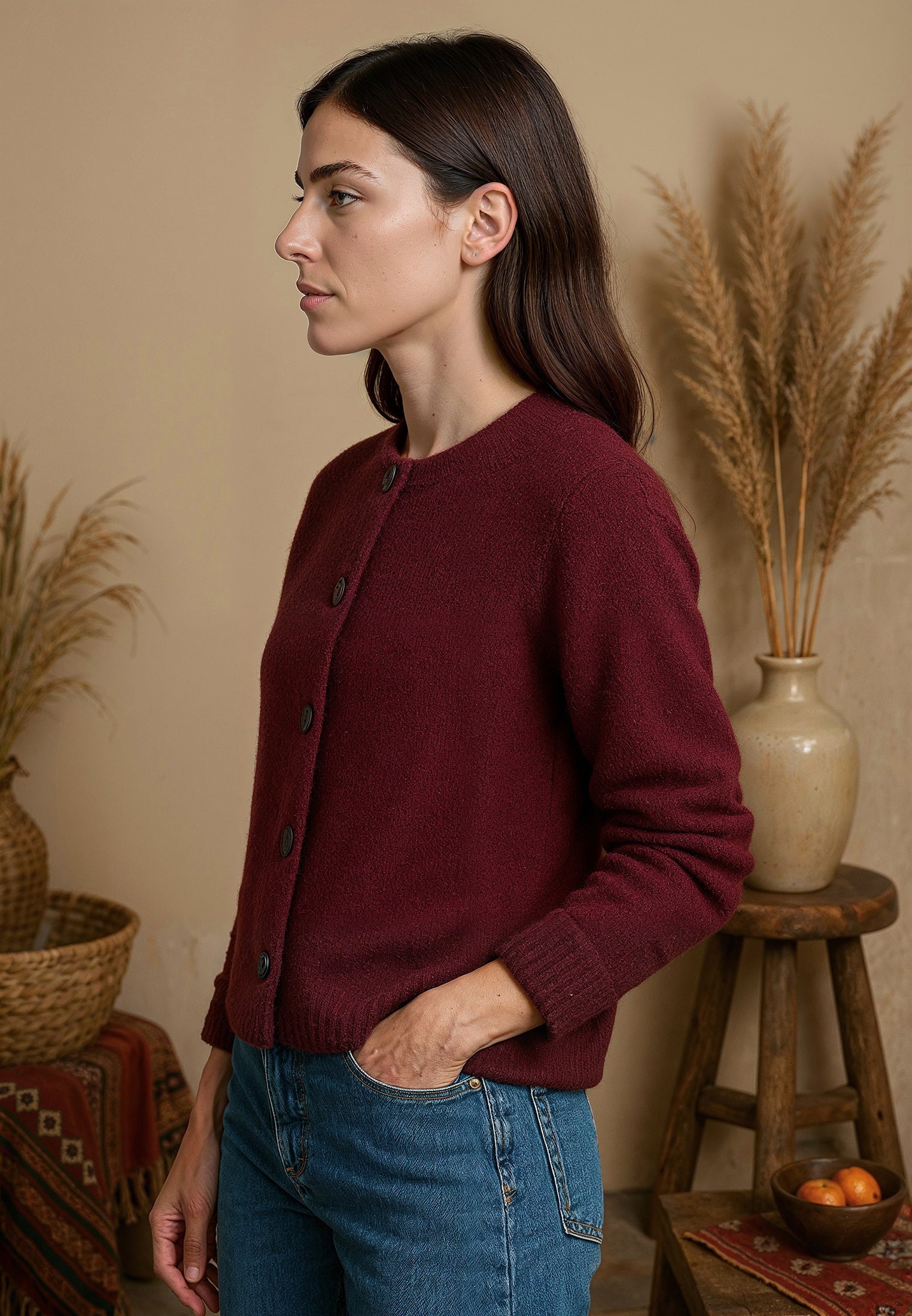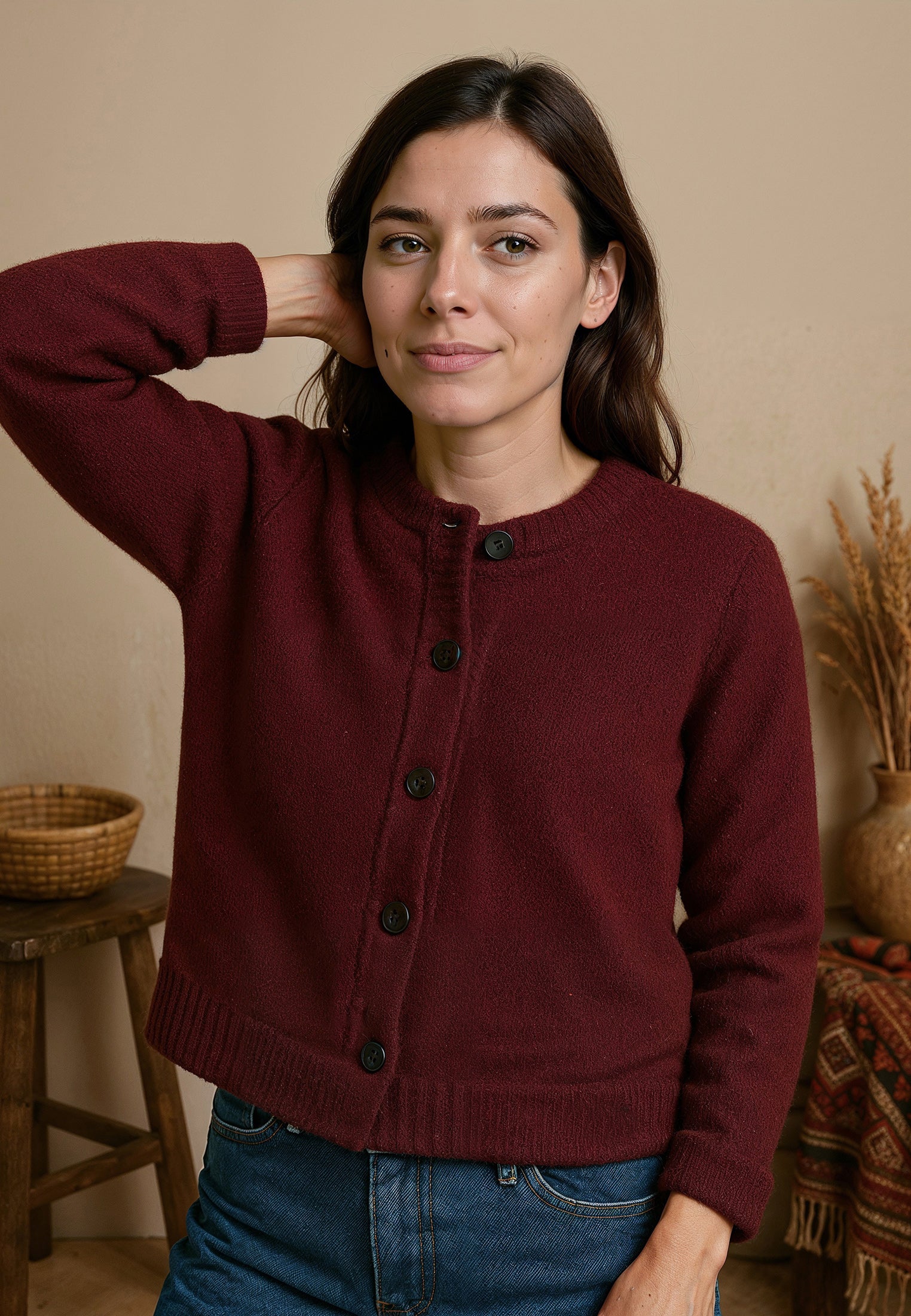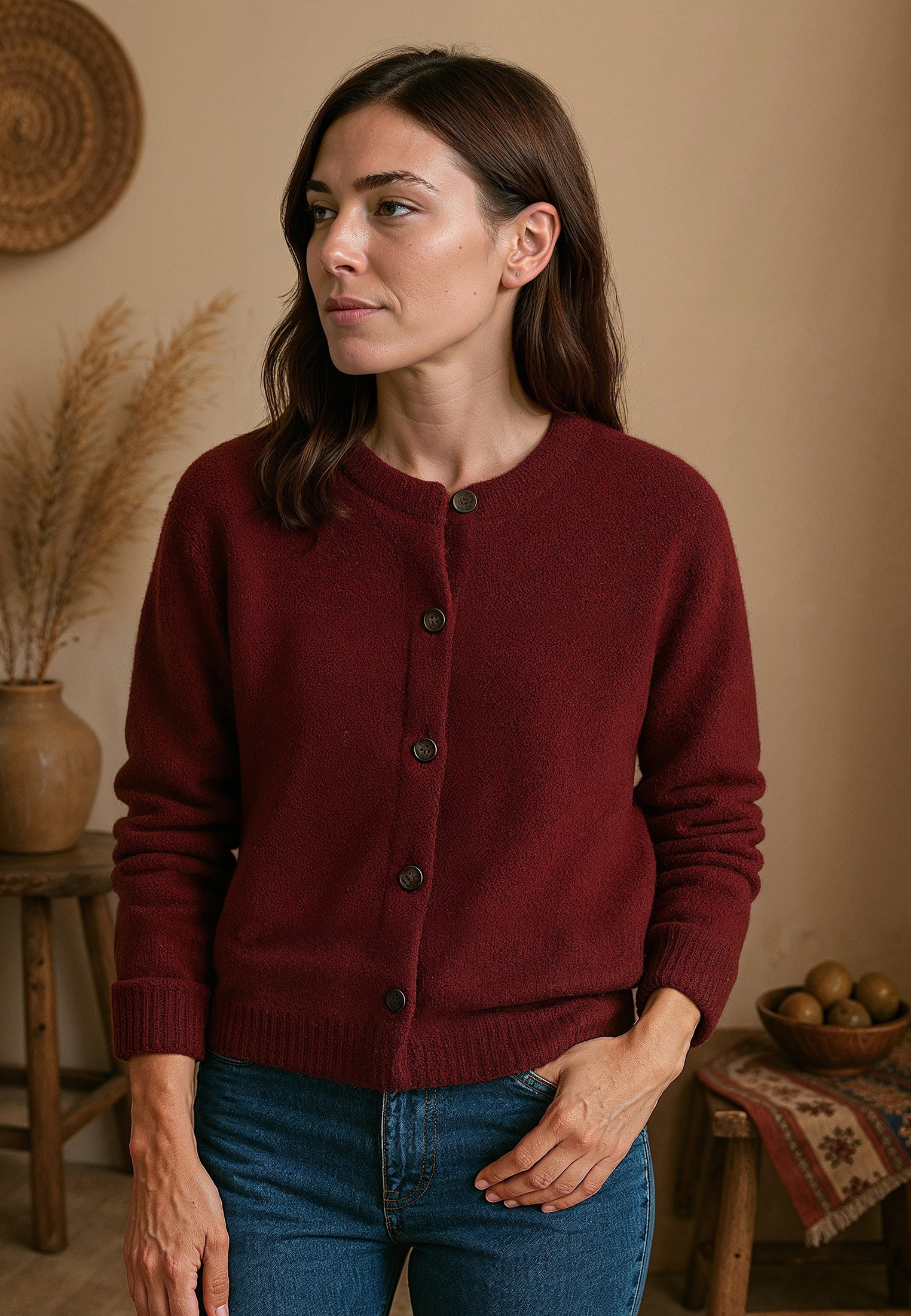Gilet en 100% nylon avec un col rond et une fermeture à boutons pour un look élégant et chic. Les manches longues évasées ajoutent une touche de féminité et de style. Le logo J&JOY est discrètement placé en bas à droite pour une finition parfaite. Ce cardigan femme Laguna Parón est un incontournable de la garde-robe, associant confort et élégance avec sa couleur bordeaux intemporelle. Parfait pour une tenue décontractée ou pour une soirée spéciale, ce gilet apportera une touche de sophistication à toutes vos tenues.
