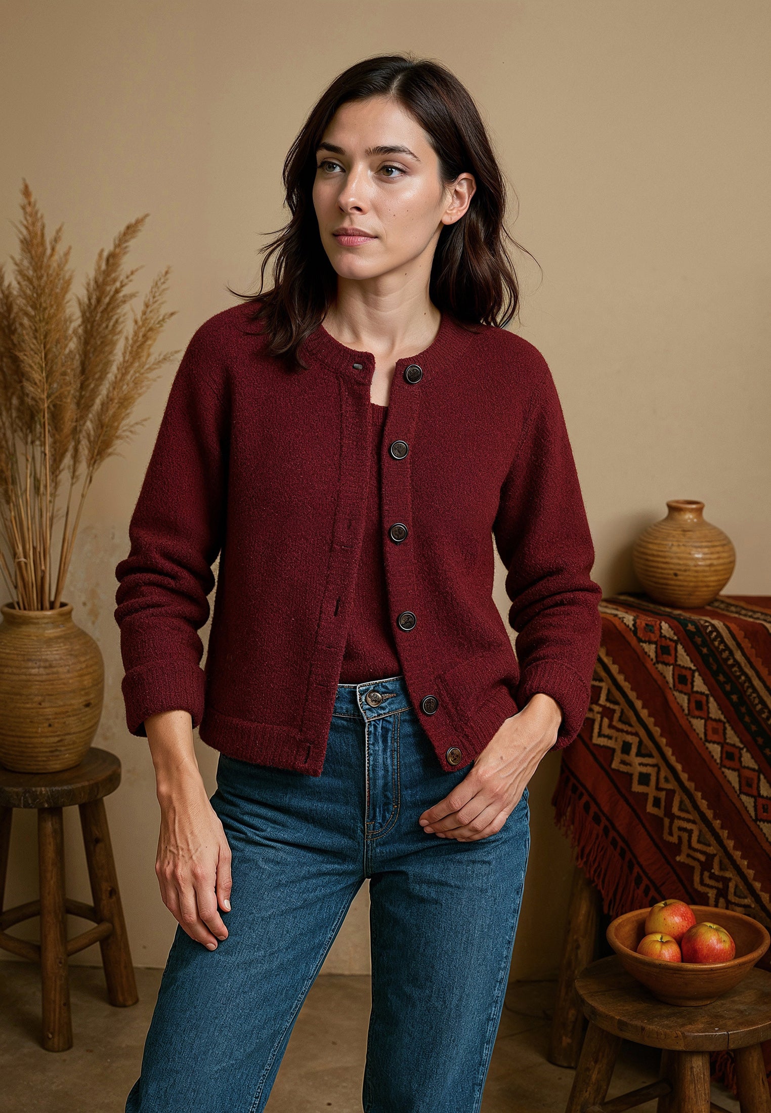 Ajoutez une touche de sophistication à votre tenue avec ce cardigan femme en nylon bordeaux, inspiré par le thème Laguna Parón. Doté d'une boutonnière et d'un col rond, ce gilet est à la fois élégant et confortable. Les manches longues évasées ajoutent une touche de féminité, tandis que le logo J&JOY en bas à droite témoigne de l'authenticité du produit. Parfait pour compléter votre look au quotidien, ce cardigan est un incontournable de la saison. Commandez dès maintenant et ajoutez une pièce polyvalente à votre garde-robe.