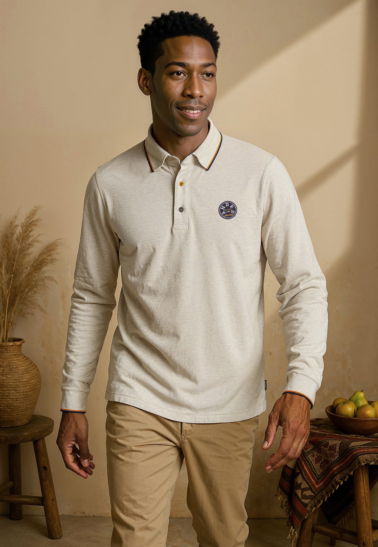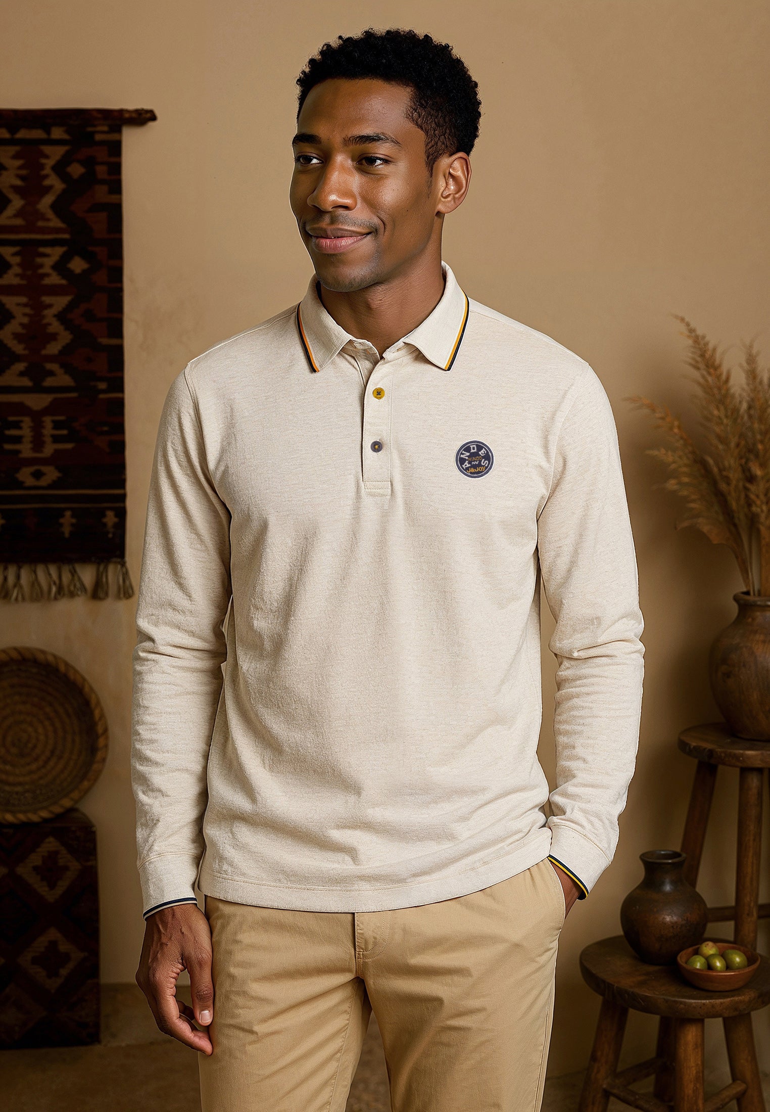 Obtenez un look décontracté et tendance avec ce polo homme à manches longues en beige, inspiré par l'esprit dynamique de Mindo. Fabriqué à partir d'un mélange de 68% coton et 32% polyester, ce polo offre à la fois confort et durabilité. Sa coupe droite et son col polo côtelé avec liseré contrasté ajoutent une touche de sophistication, tandis que le rib stylisé à l'intérieur du col offre un confort supplémentaire. La patte de boutonnage à deux boutons et le logo J&JOY brodé sur le cœur témoignent de l'authenticité de ce vêtement de qualité. Parfait pour une tenue décontractée mais soignée, ce polo est un indispensable de votre garde-robe. Commandez dès maintenant et ajoutez une pièce polyvalente à votre collection de vêtements.