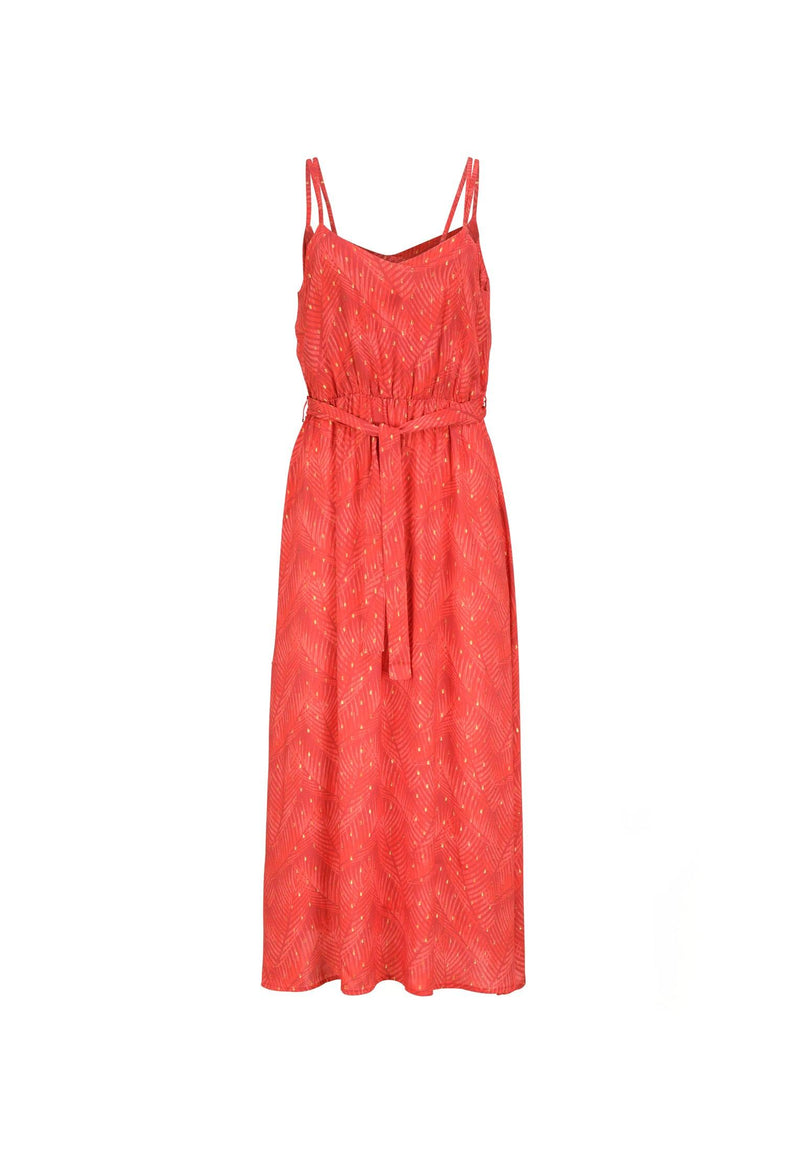 Rode viscose damesjurk, elastische taille, knoopsluiting voor