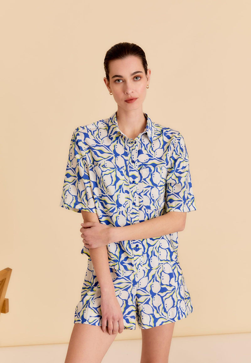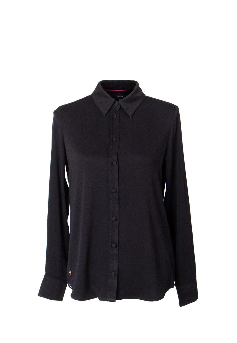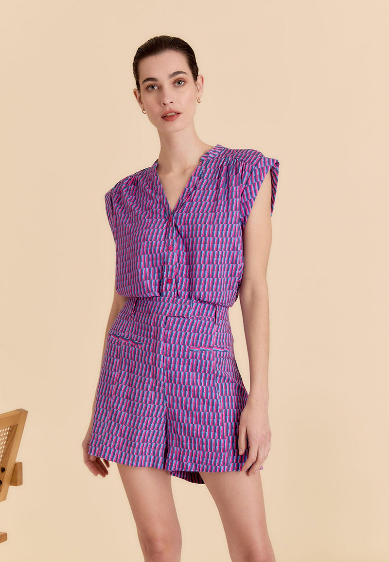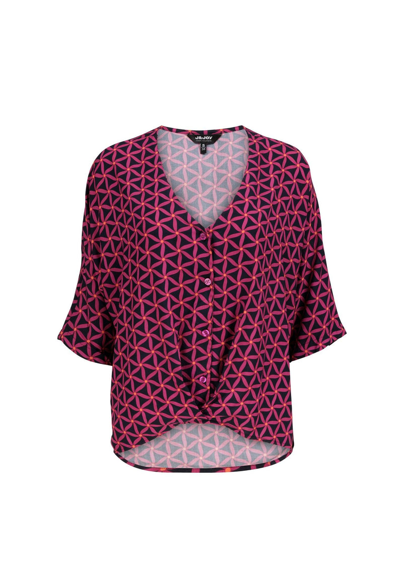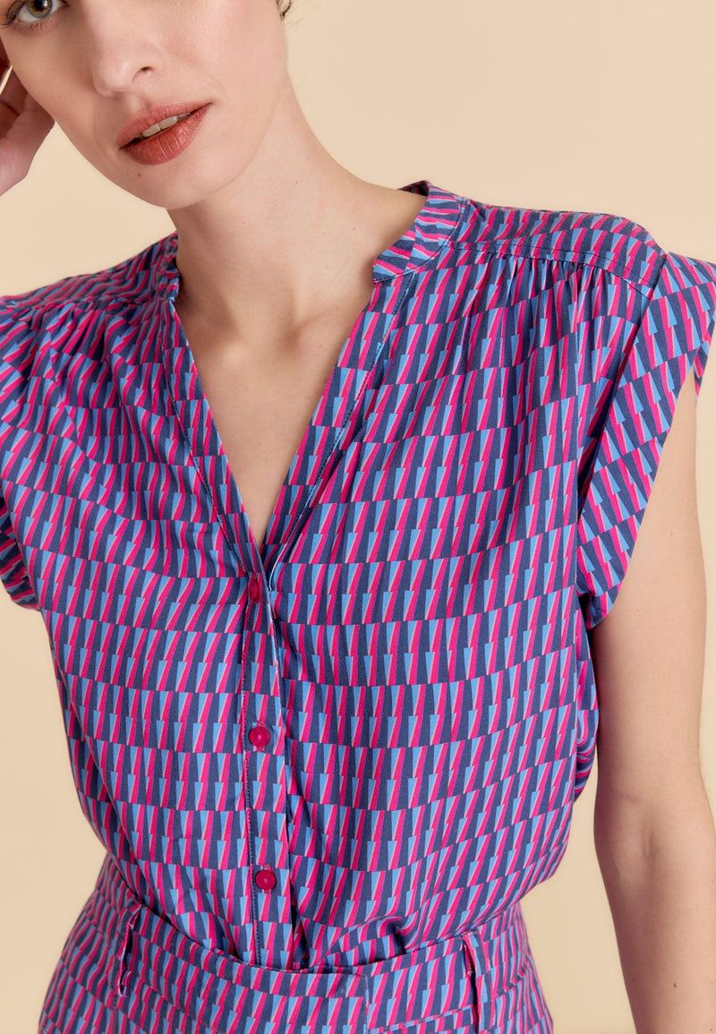 Damesshirt, opening met knoop aan de voorkant, V-hals, plooien aan de voorkant