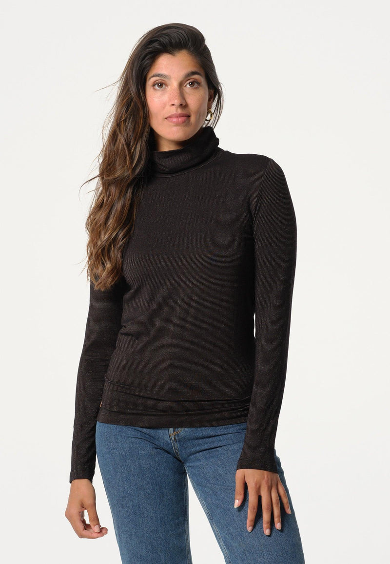 Gevoerd dames-T-shirt met lange mouwen en hoge hals