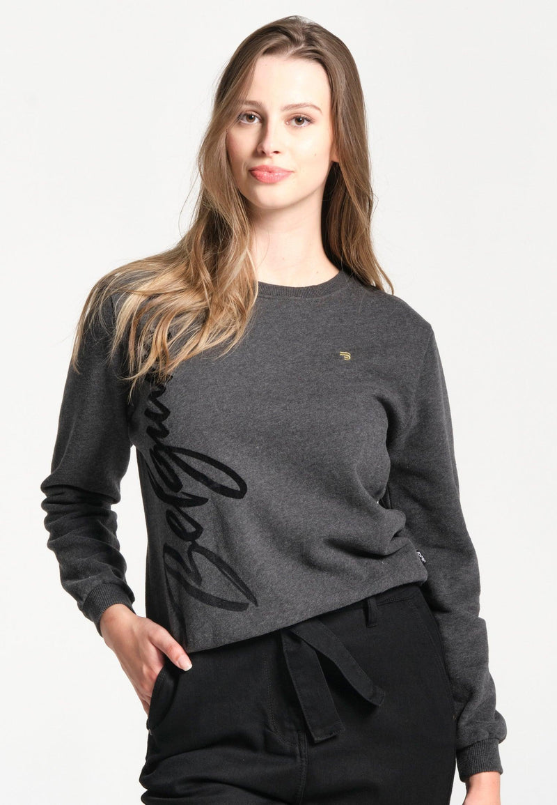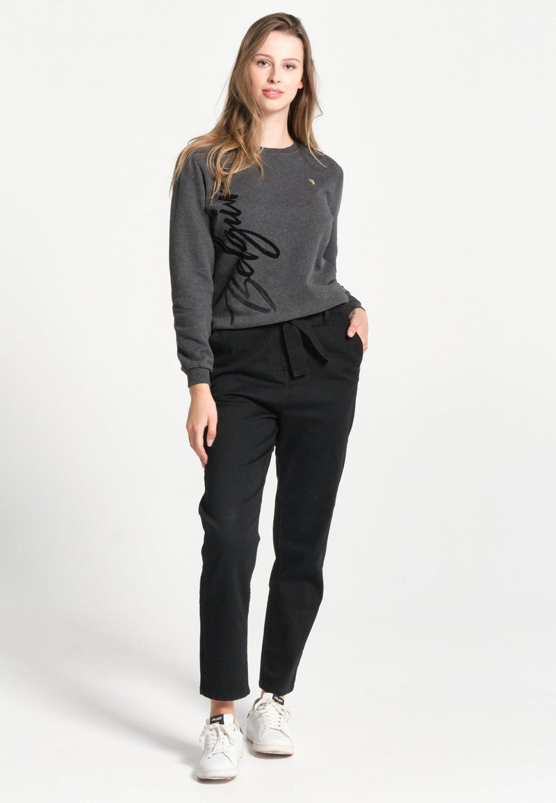 Zwart damessweatshirt met ronde hals en Belgisch logo