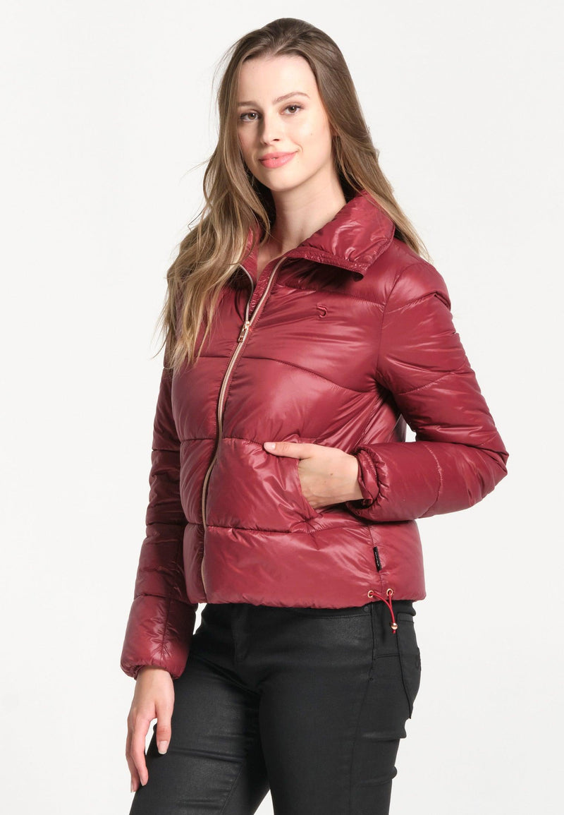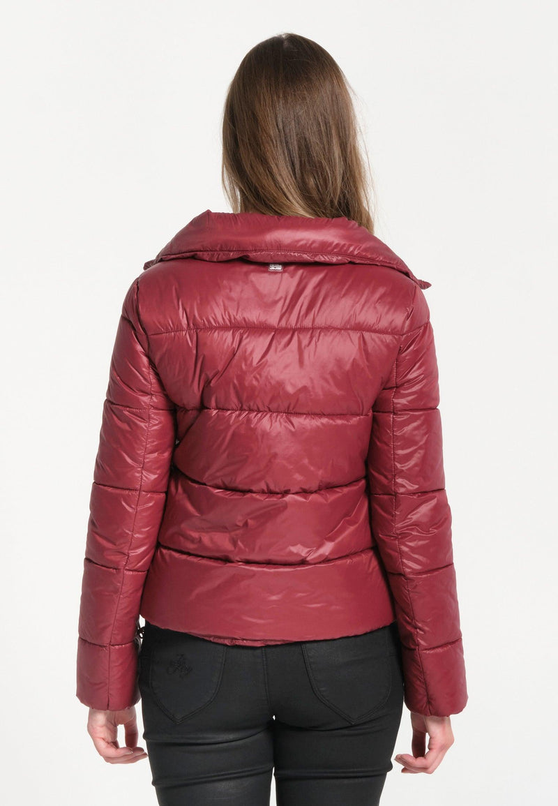 Bordeauxrood donsjack voor dames met bloemenprint aan de binnenkant
