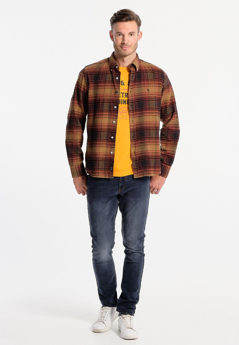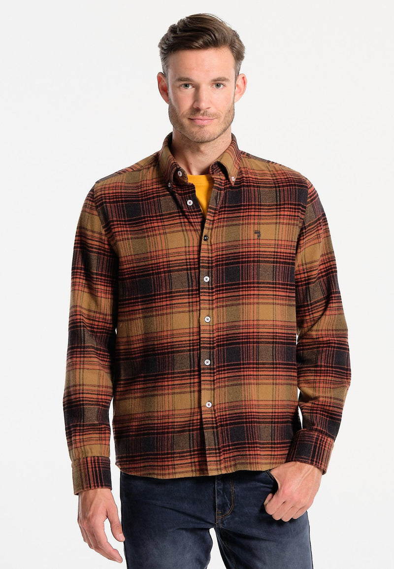 Rood, grijs en beige geruit herenoverhemd