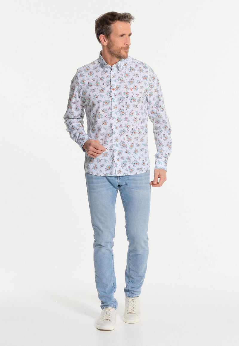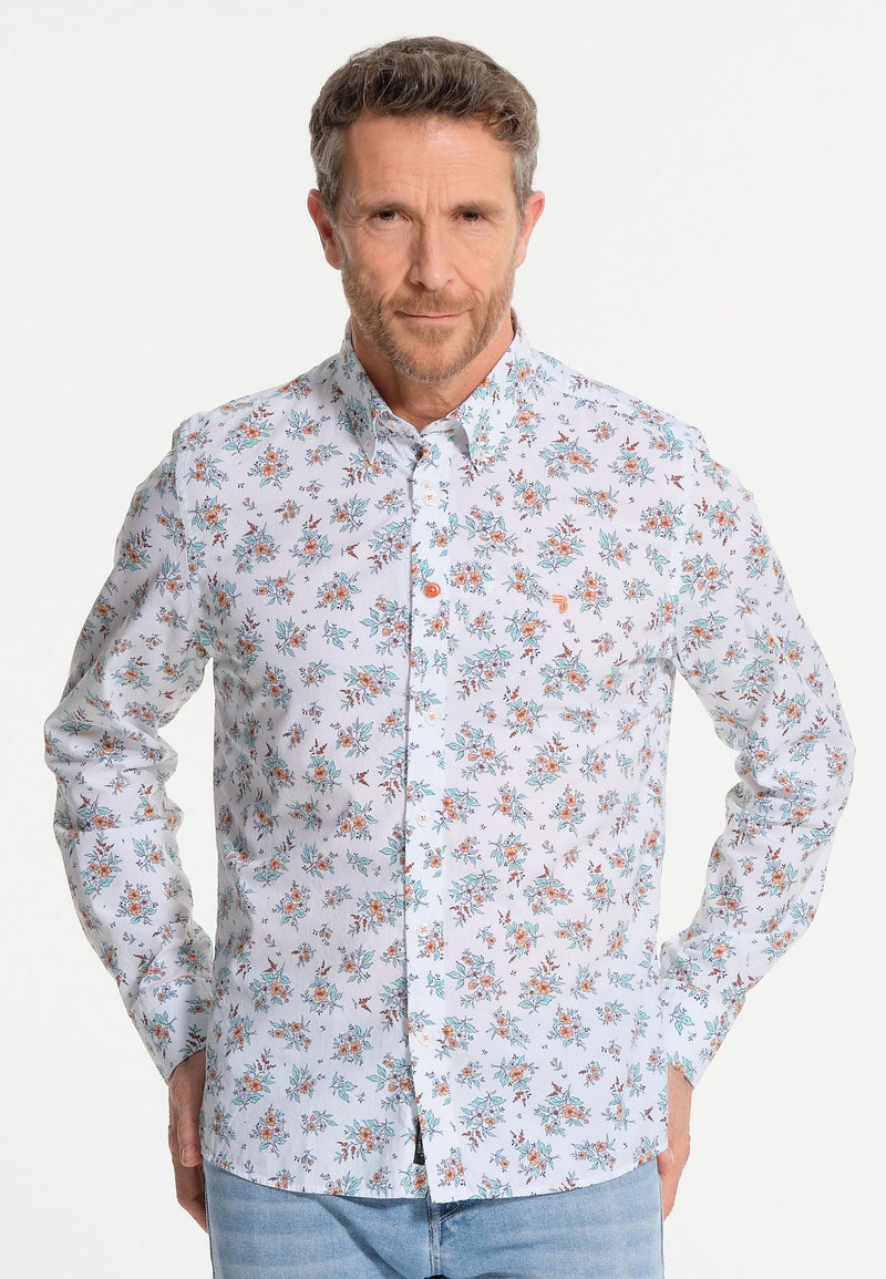 Wit herenshirt met getekende bloemen