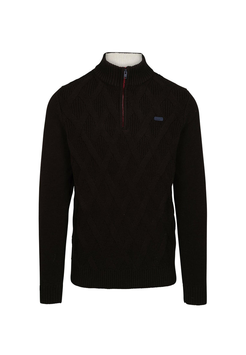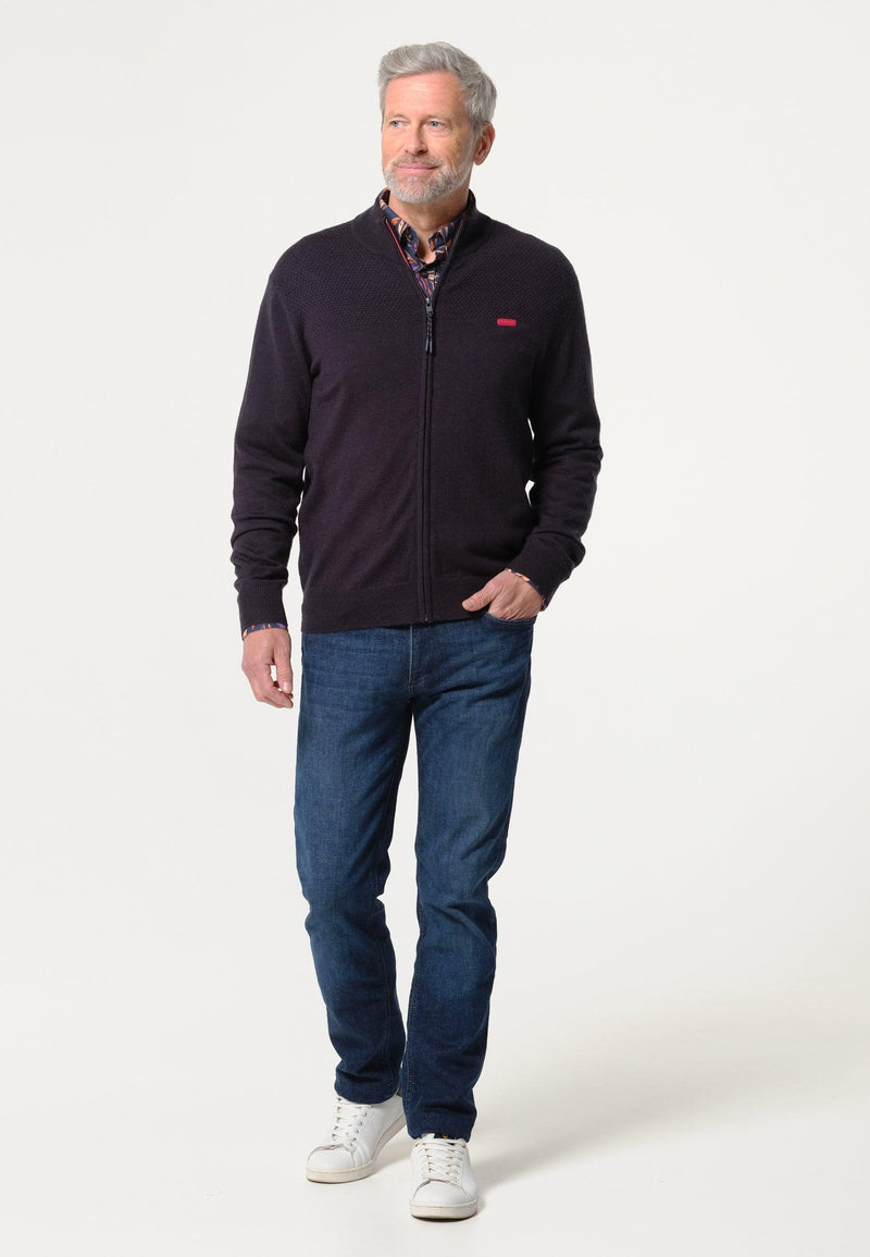 Blauwe herentrui met ritssluiting en hoge kraag