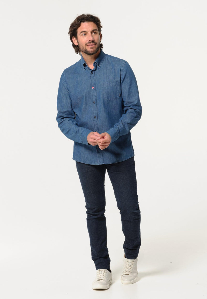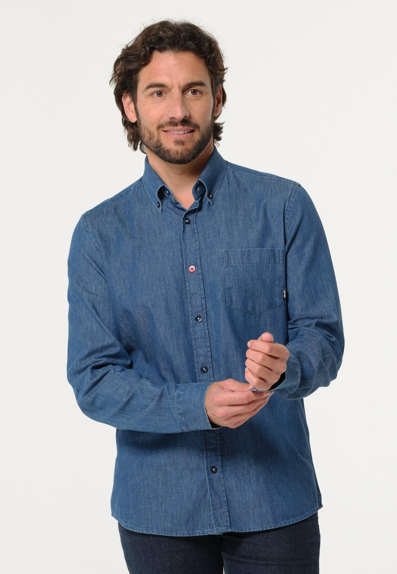Heren spijkerhemd en bladpatroon aan de binnenkant