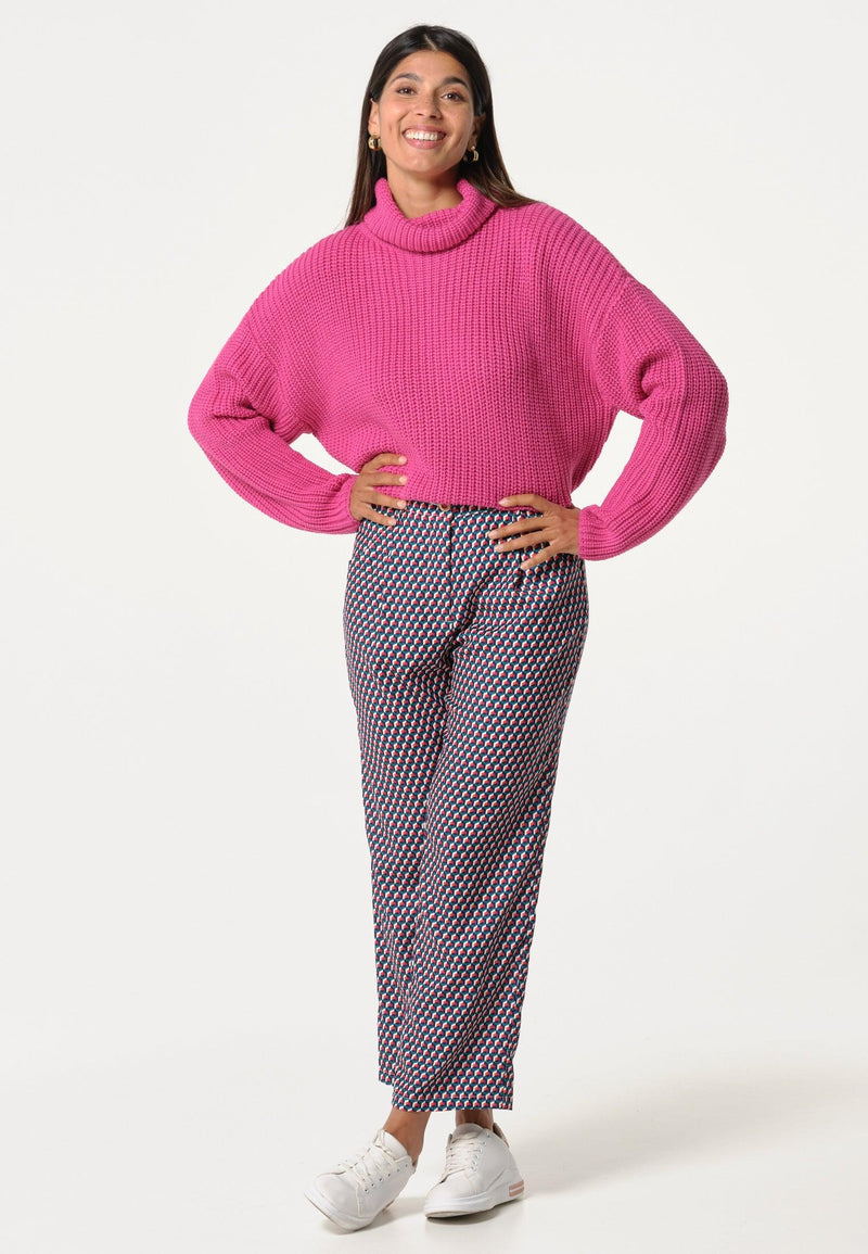 Roze damestrui met hoge kraag