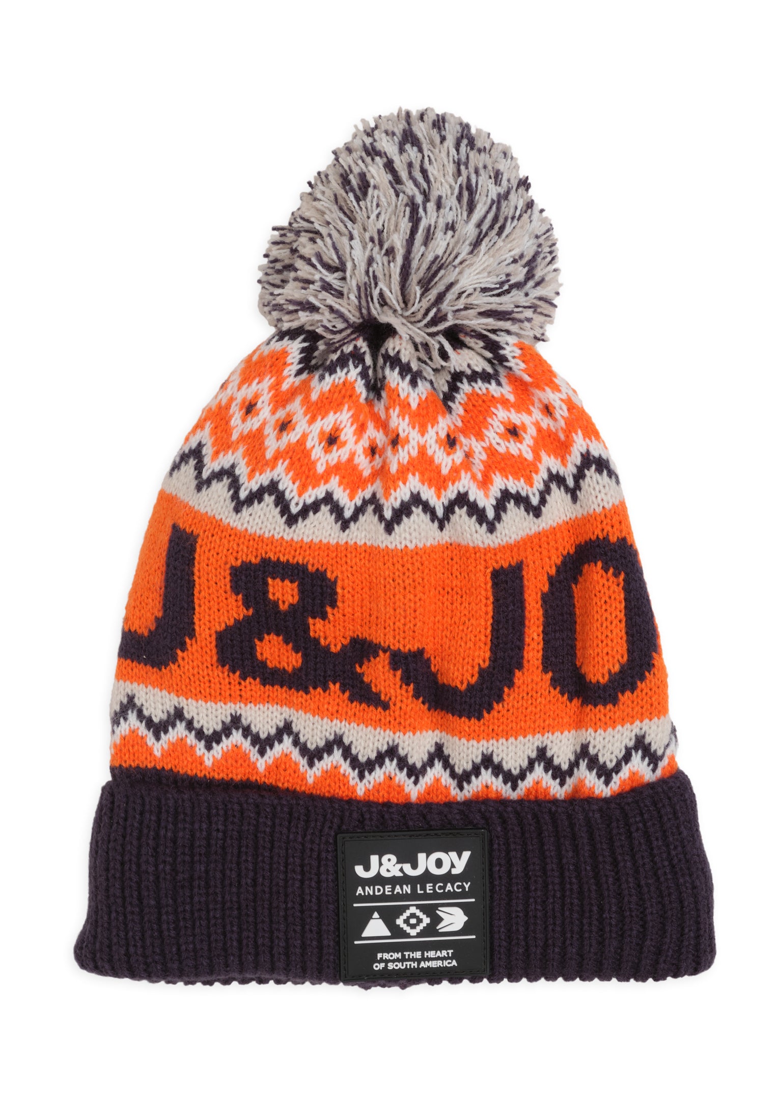 Bonnet garçon orange avec pompon et logo J&JOY
