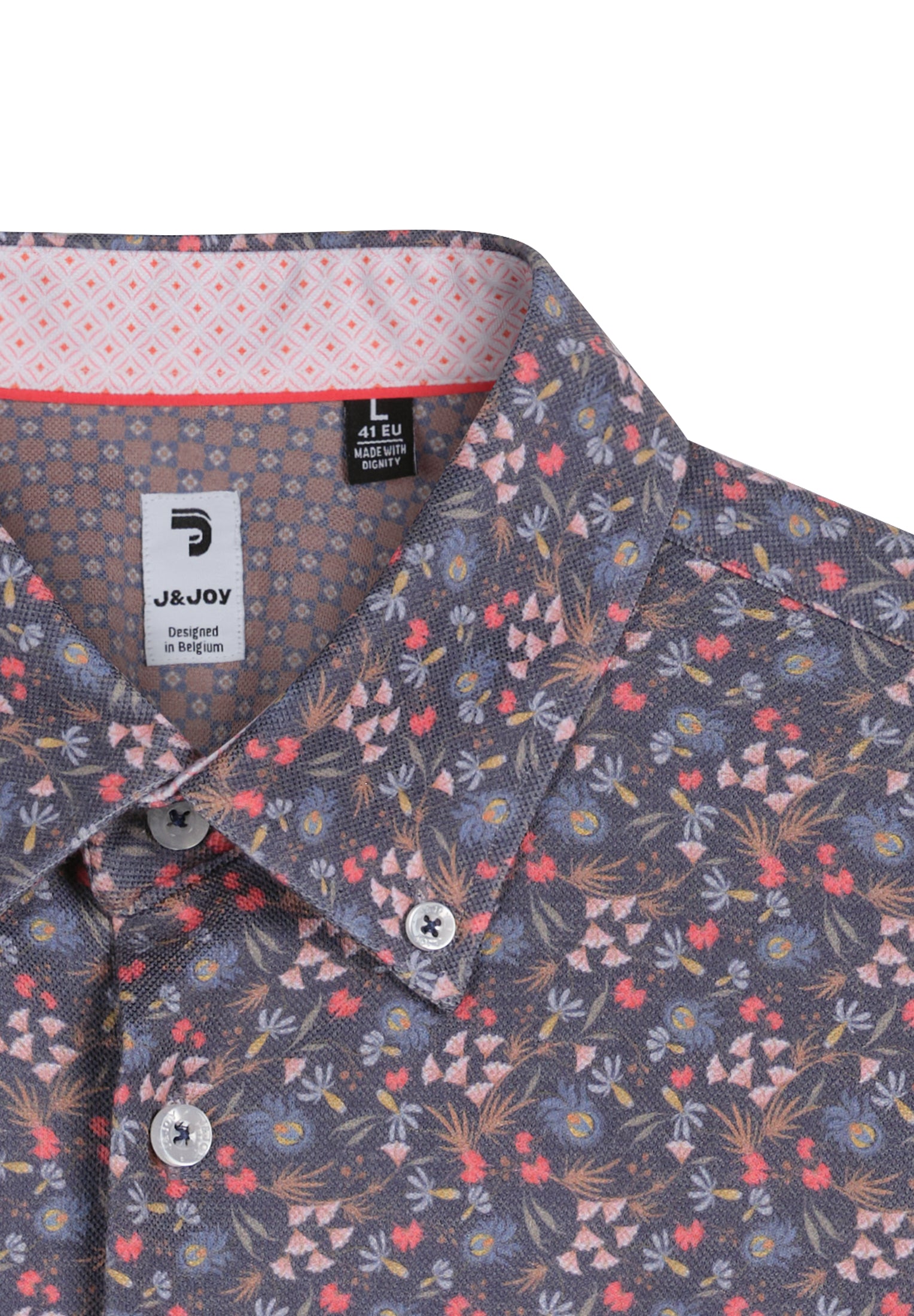 - Manches longues avec poignets à coins arrondis et logo J&JOY brodé sur la poitrine