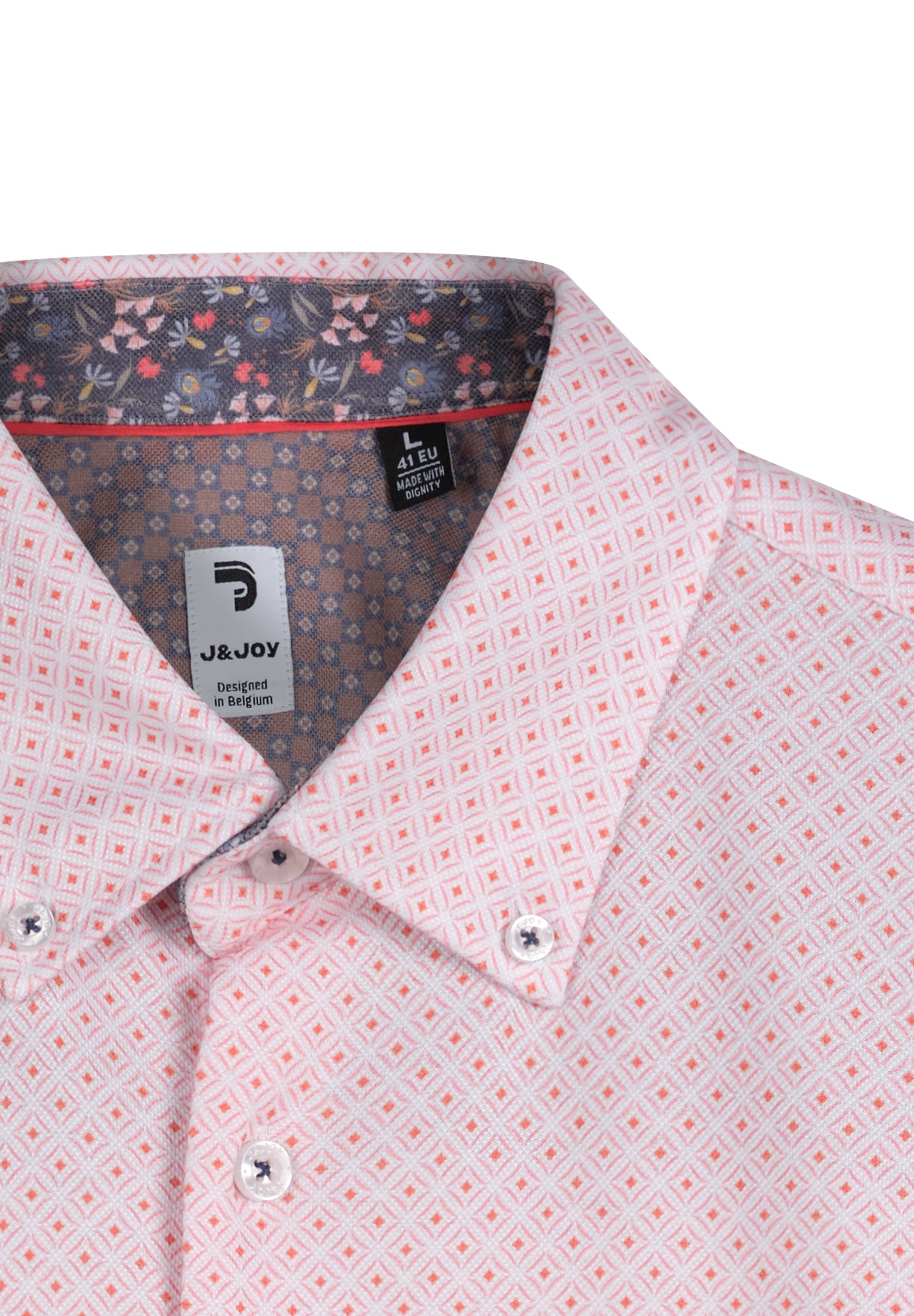 - Coupe droite élégante - Col classique avec pointes boutonnées et patte de boutonnage classique - Confection en 100% coton de qualité pour un confort optimal - Manches longues avec poignets à coins arrondis et logo J&JOY brodé sur la poitrine