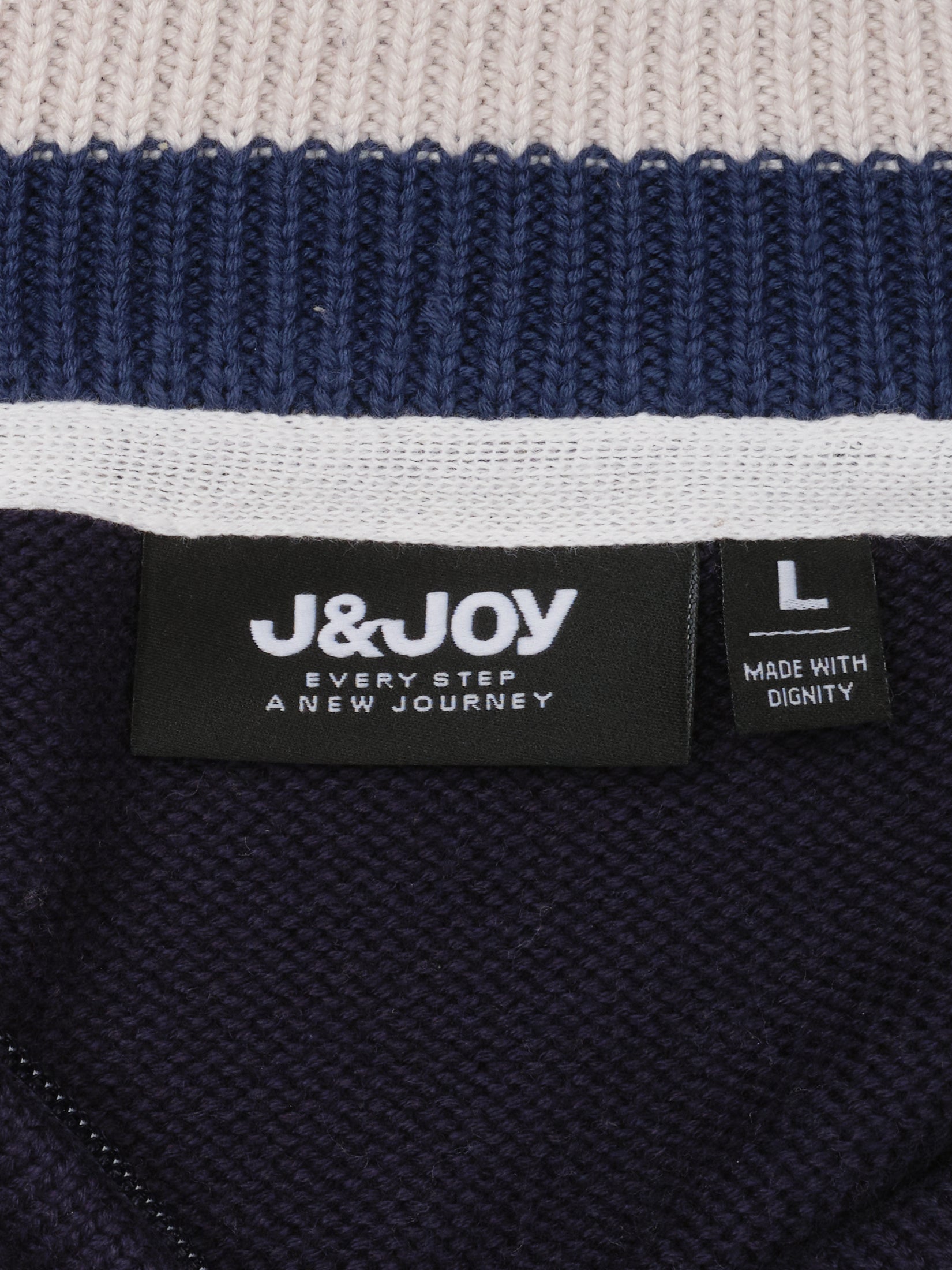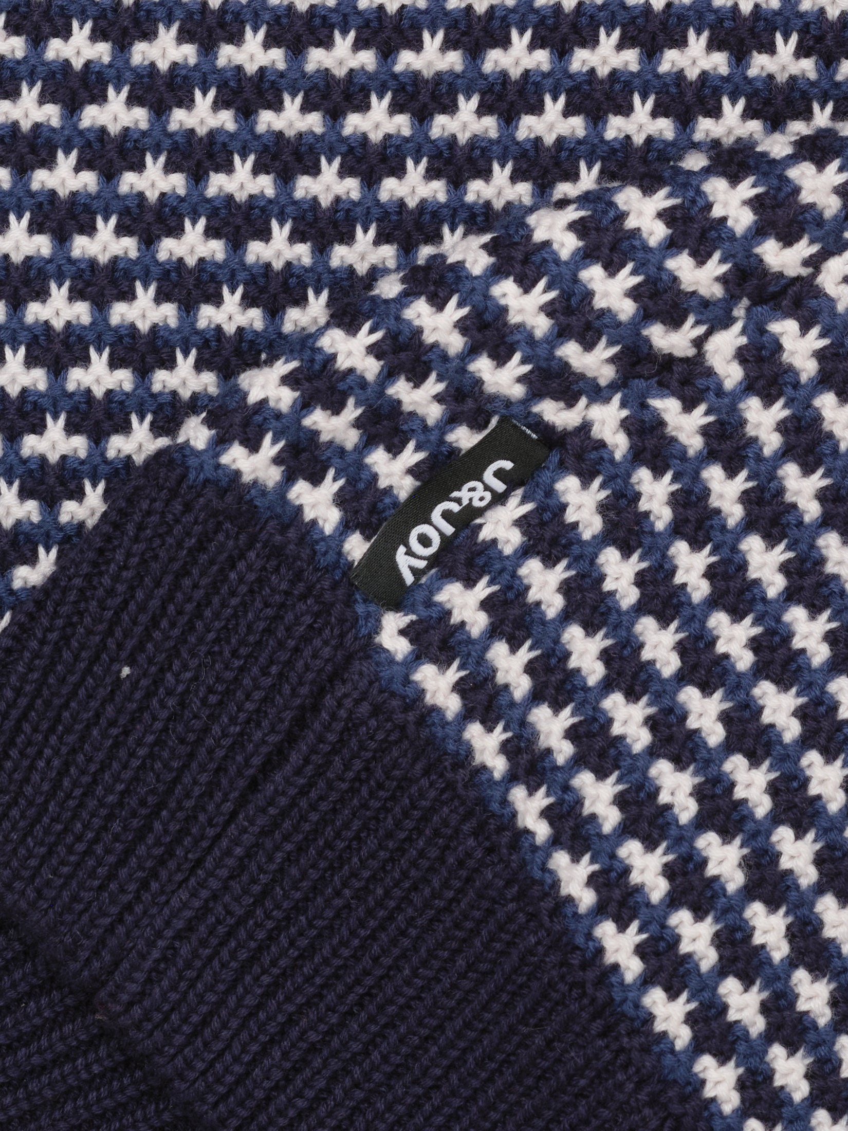 - Logo J&JOY gommé sur le cœur, ajoutant une touche subtile de marque à ce pull bleu inspiré par la Cordillère des Andes.