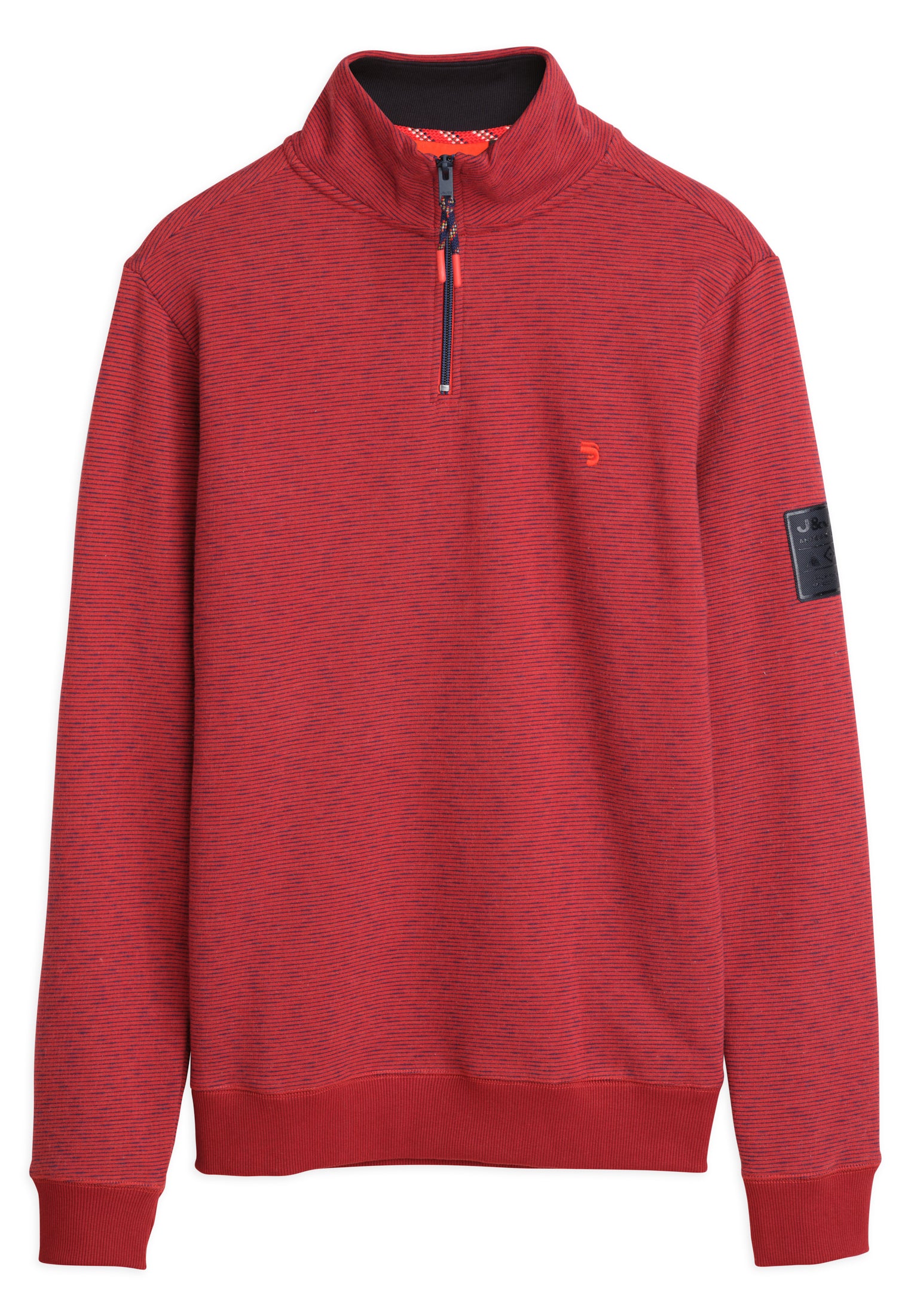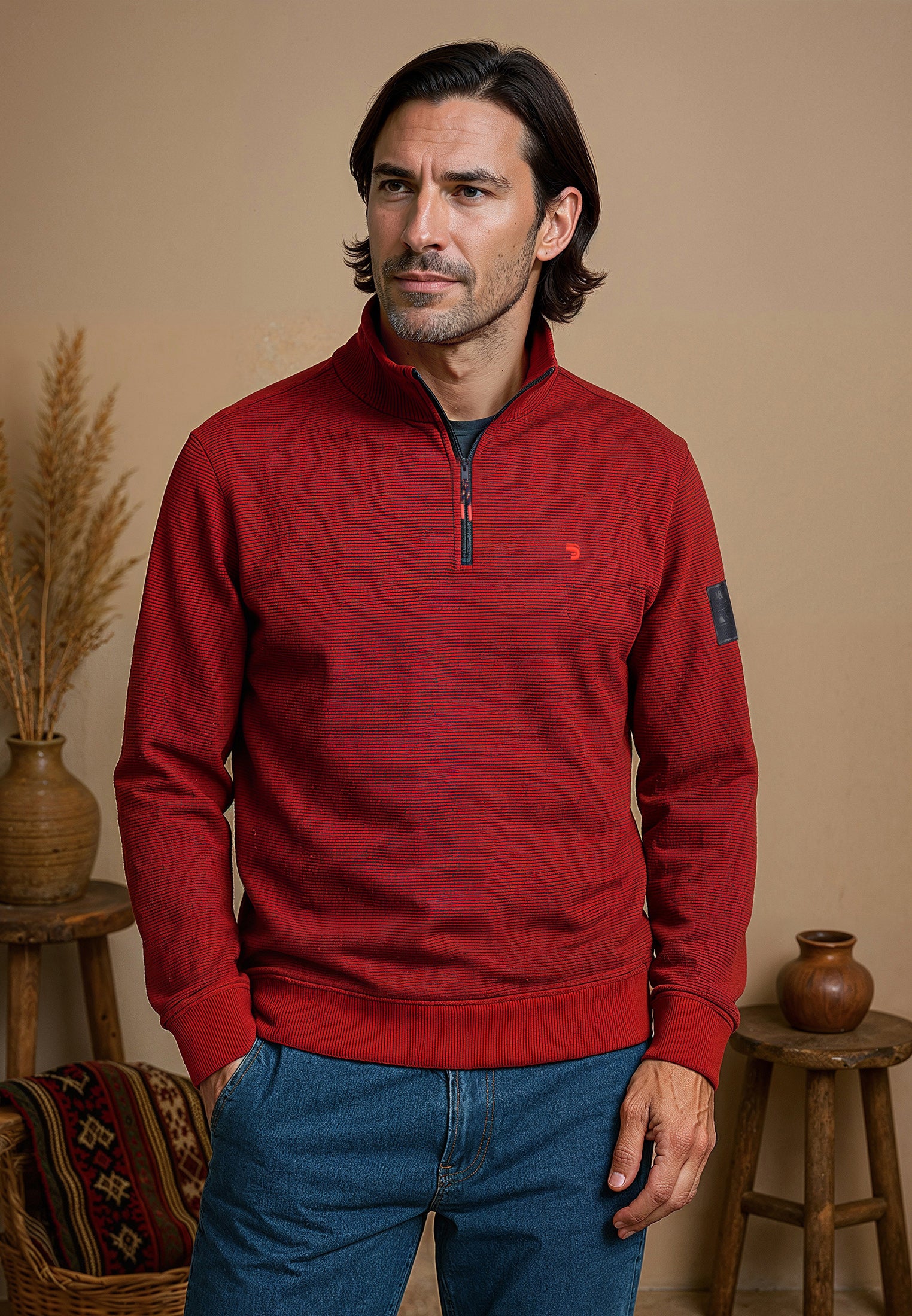 Mettez une touche de modernité dans votre garde-robe avec ce sweatshirt homme bordeaux de la collection Mindo. Fabriqué en 85% coton et 15% polyester, ce sweatshirt offre confort et chaleur tout en restant élégant. Sa coupe droite, son col zippé avec finitions contrastées et son intérieur en polaire en font un indispensable pour affronter les journées fraîches avec style. Les bords côtelés et stylisés dans le col ainsi que les poignets côtelés stretch ajoutent des détails raffinés à ce sweatshirt. Les manches longues et la double poche ventrale façon kangourou offrent une praticité au quotidien, tandis que le logo J&JOY gommé sur le cœur témoigne de l'authenticité du produit. Commandez dès maintenant pour ajouter une pièce tendance à votre dressing.