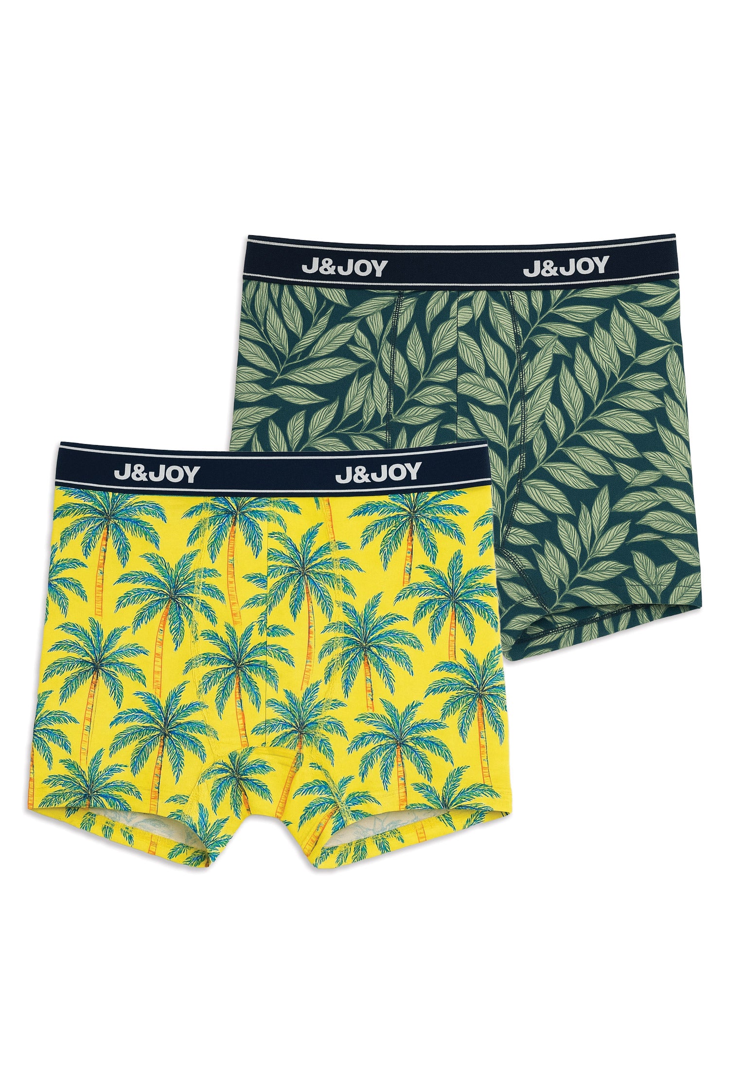 Pack de 2 boxers homme bleu et jaune feuilles et palmiers
