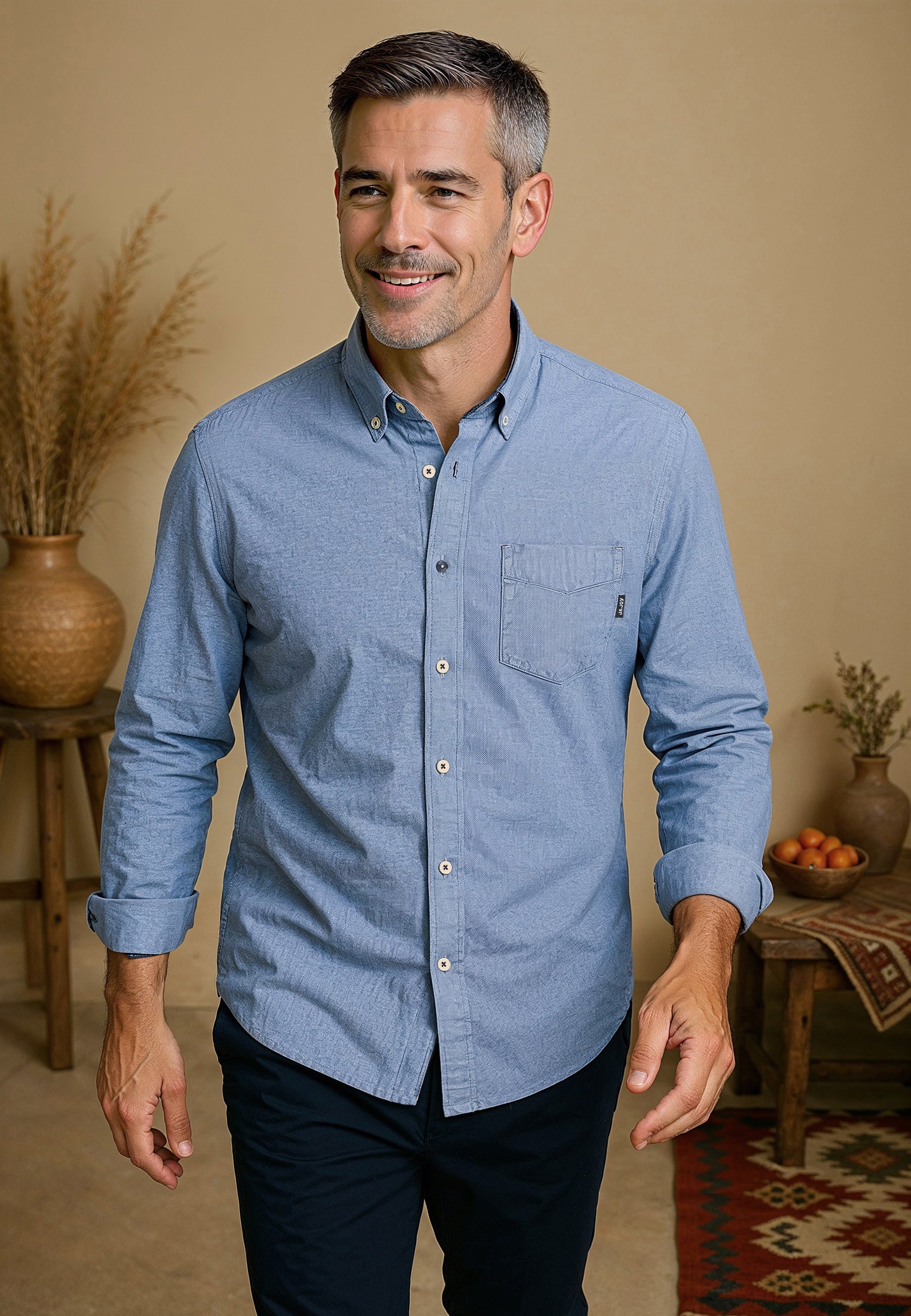 Mettez en valeur votre style décontracté avec cette chemise homme en jeans inspirée par la nature luxuriante de Mindo. Confectionnée en 100% coton, cette chemise offre une coupe droite impeccable et un confort optimal. Le col classique, les pointes boutonnées et la patte de boutonnage classique ajoutent une touche classique à ce modèle tandis que l'imprimé fleuri intérieur apporte une note de fraîcheur et d'originalité. Les poignets à coins arrondis et la poche poitrine apportent des détails raffinés, tandis que le logo J&JOY brodé sur la poitrine et le cordonnet témoignent de l'authenticité et de la qualité de cette chemise. Commandez dès maintenant et ajoutez une pièce tendance à votre garde-robe.