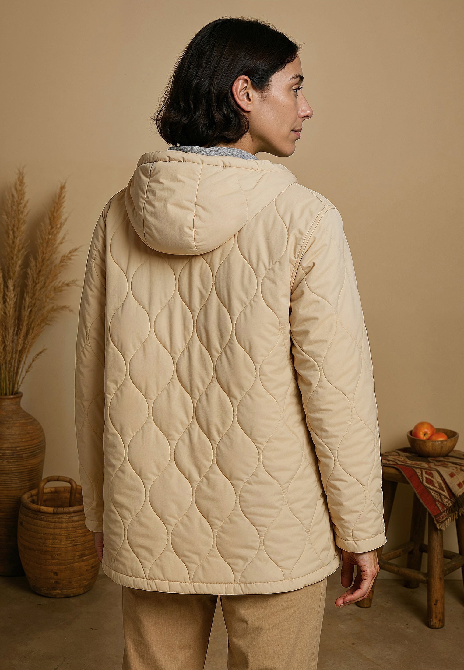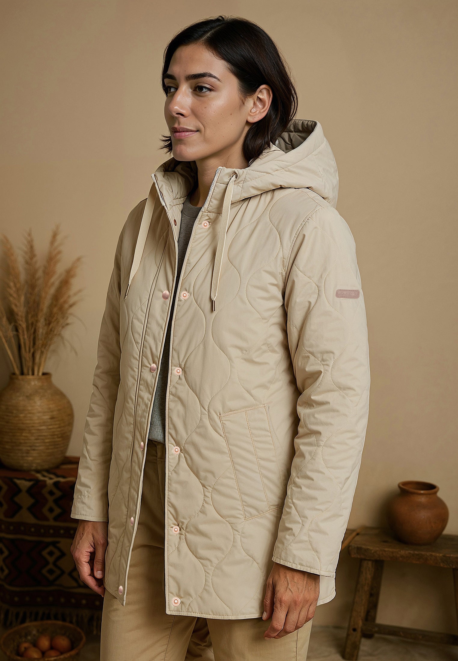 Optez pour un look tendance et confortable avec cette veste beige à l'effet doudoune stylisé, inspirée par le thème Laguna Parón. Fabriquée en 100% polyester, cette veste offre chaleur et légèreté. Sa coupe évasée et ses manches longues offrent une silhouette flatteuse, tandis que l'ouverture zippée avec finition contrastée et boutons apporte une touche de style supplémentaire. Les poches latérales et la capuche avec cordons de serrage ajoutent à la fonctionnalité de cette veste. Le patch J&JOY sur le bras gauche témoigne de son authenticité. Parfaite pour affronter les journées fraîches avec style, cette veste est un incontournable de votre garde-robe. Commandez dès maintenant et ajoutez une pièce essentielle à votre collection de vêtements d'extérieur.