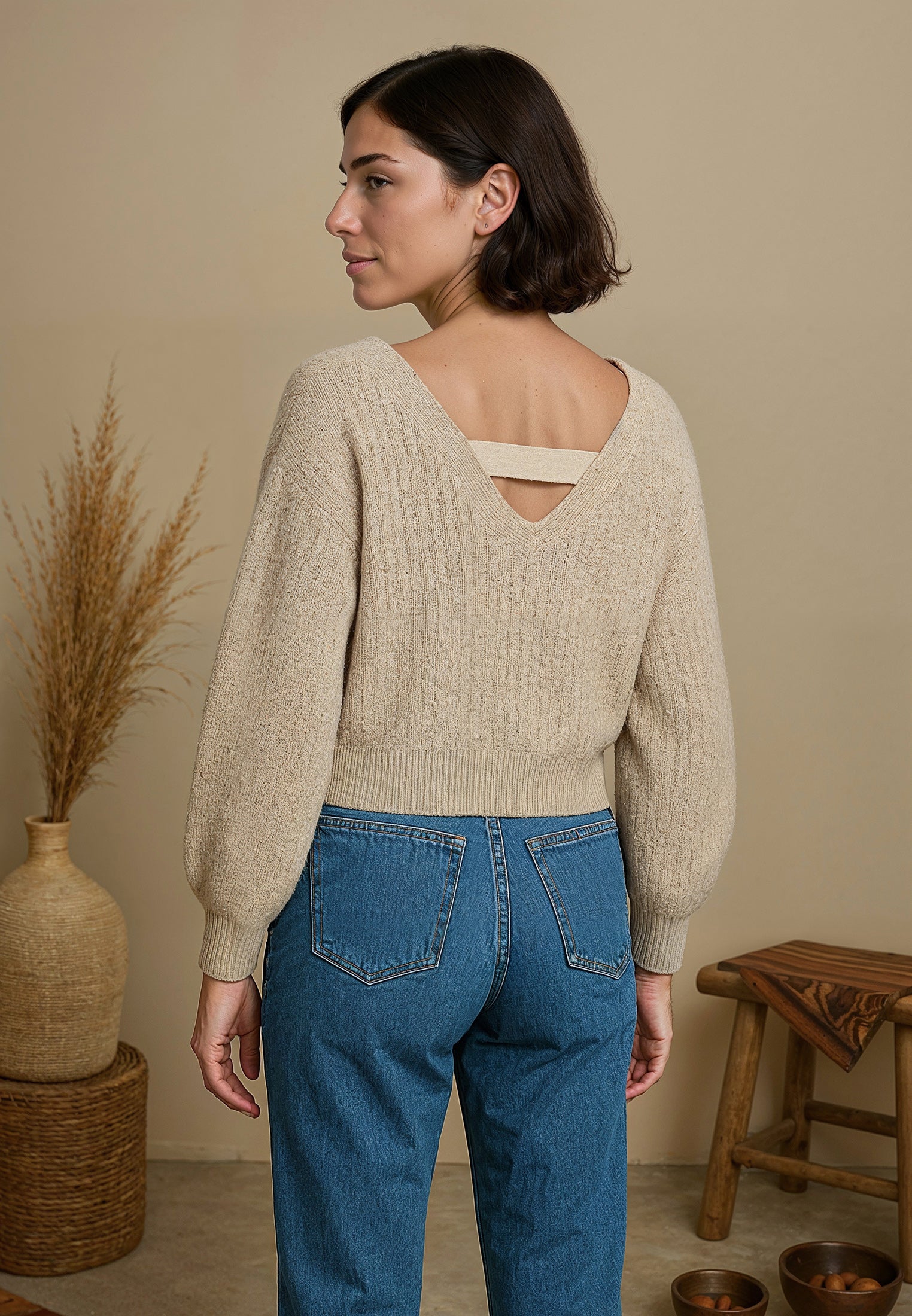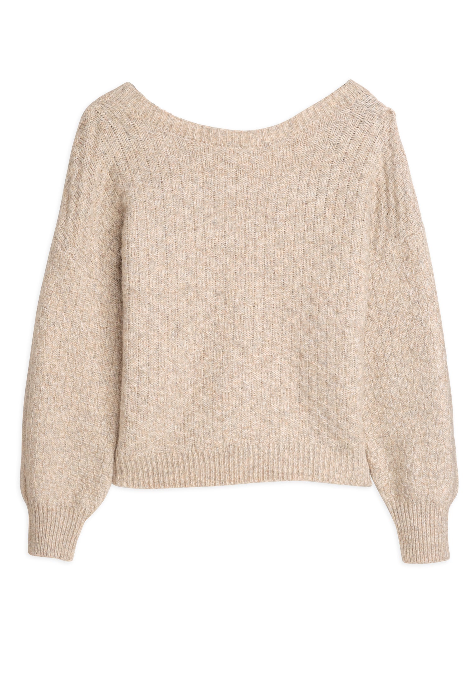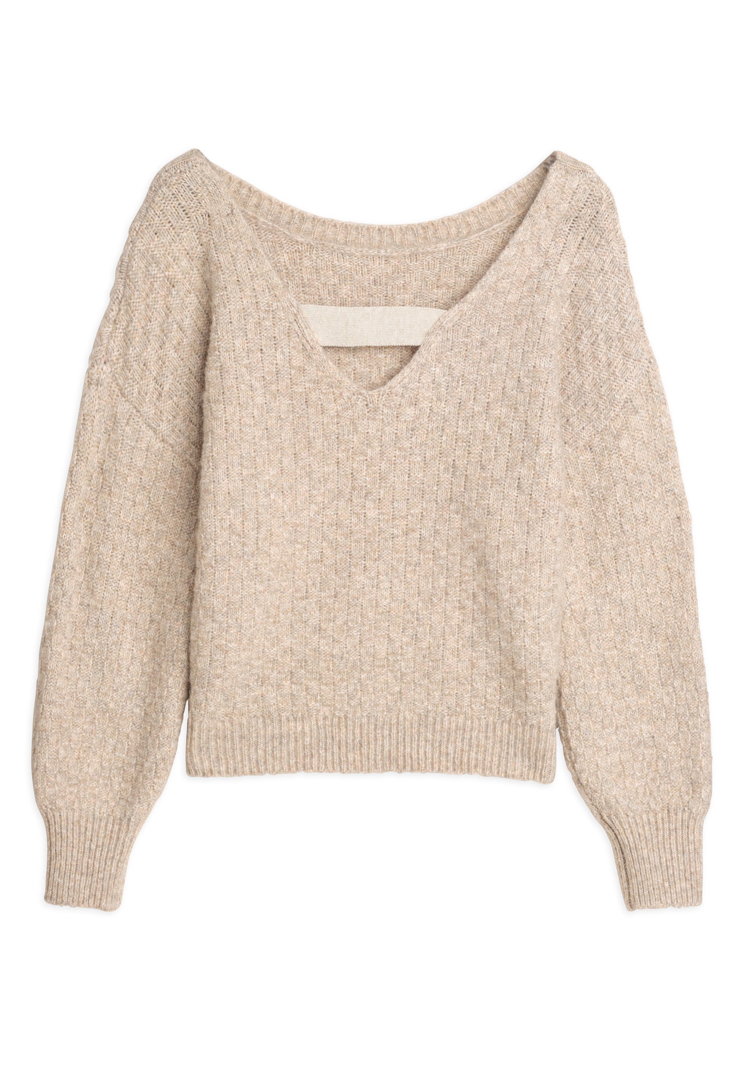 - Ouverture dans le dos en V élastiquée, apportant une touche d'originalité à ce pull classique