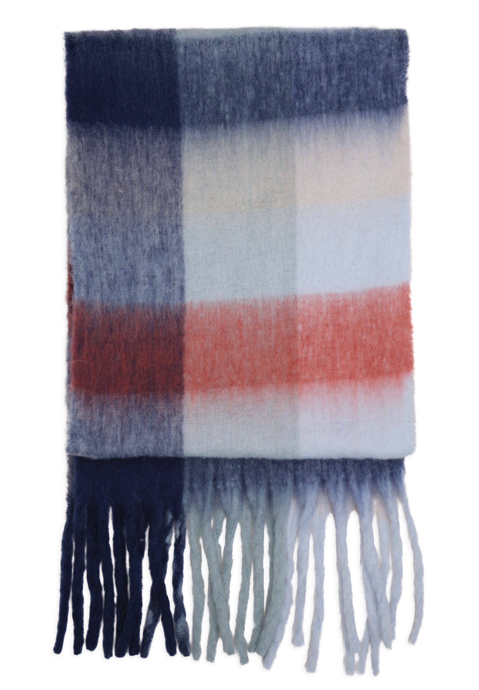 - Écharpe multicolore en forme carré avec des franges aux extrémités