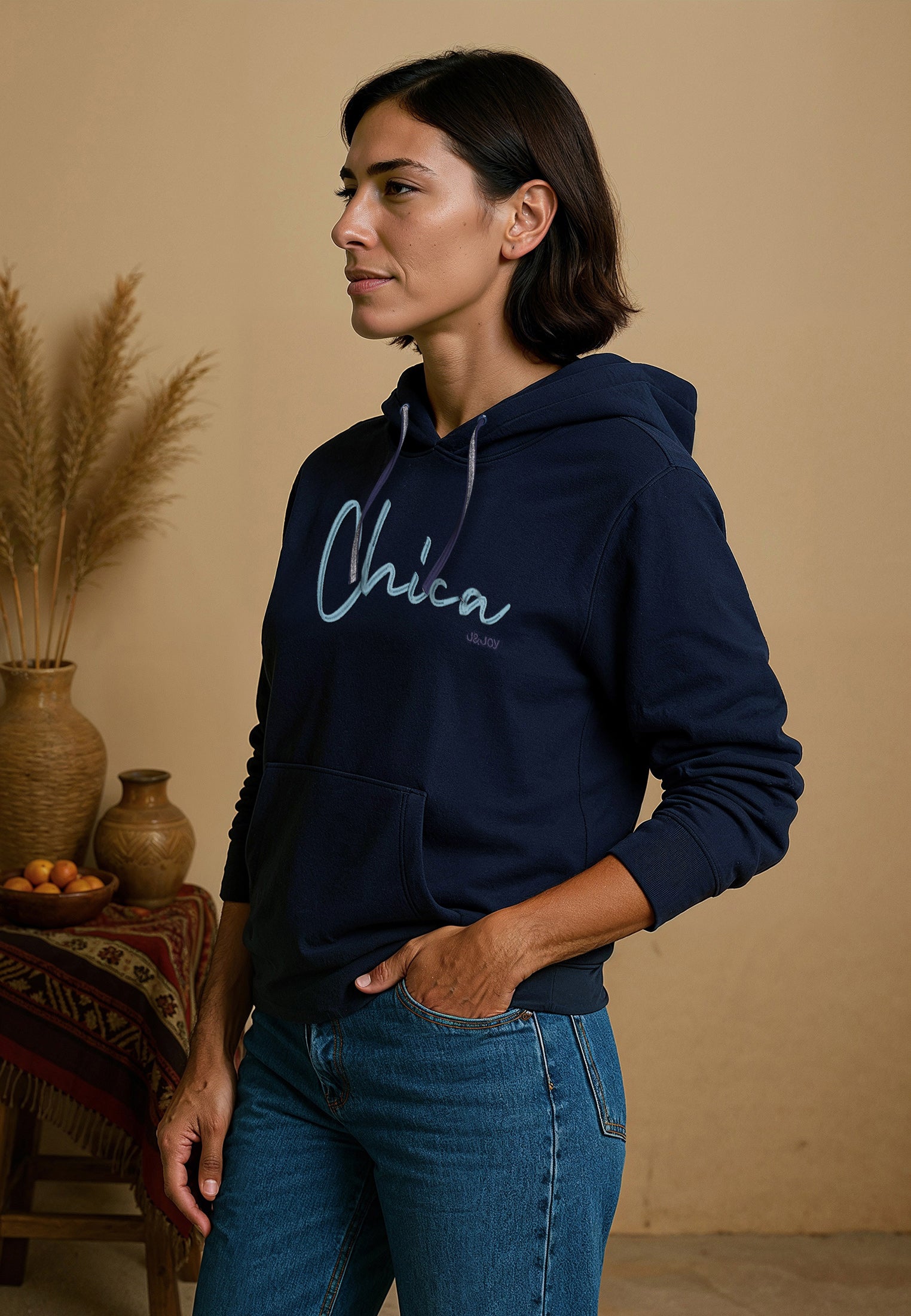 - Poche kangourou pratique et texte "chica" imprimé pour une touche d'originalité